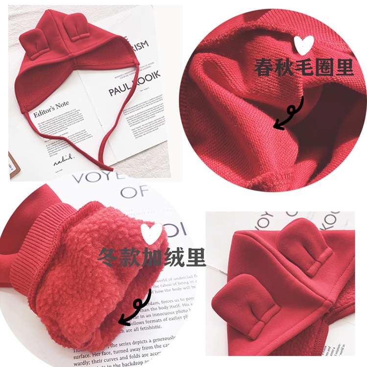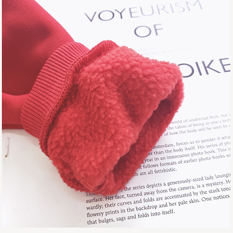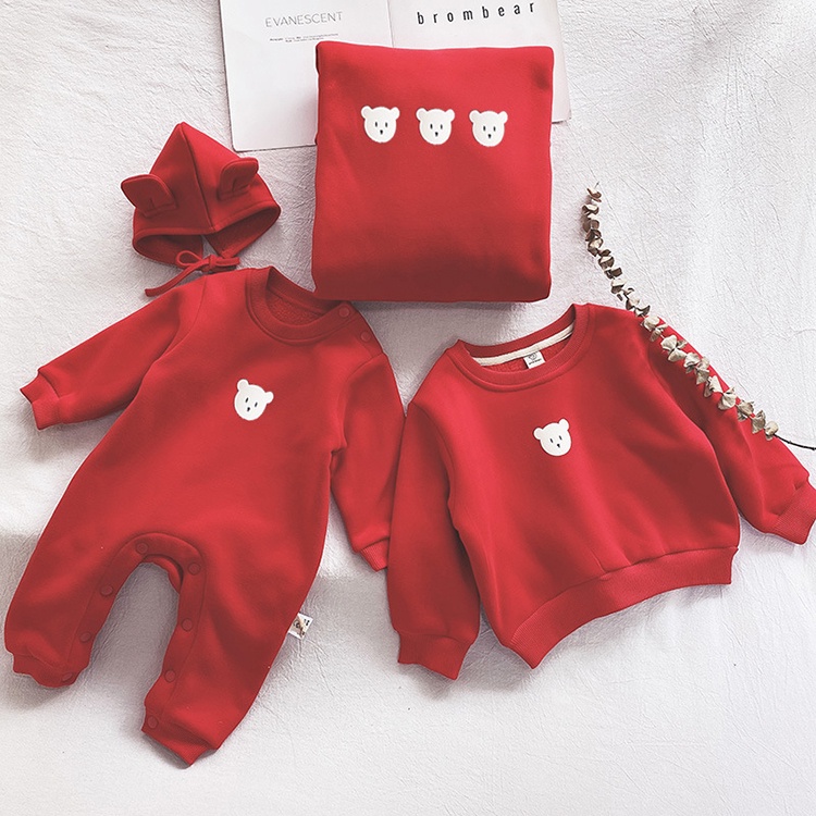 三隻小熊紅白加絨長袖親子裝情侶裝(米白)