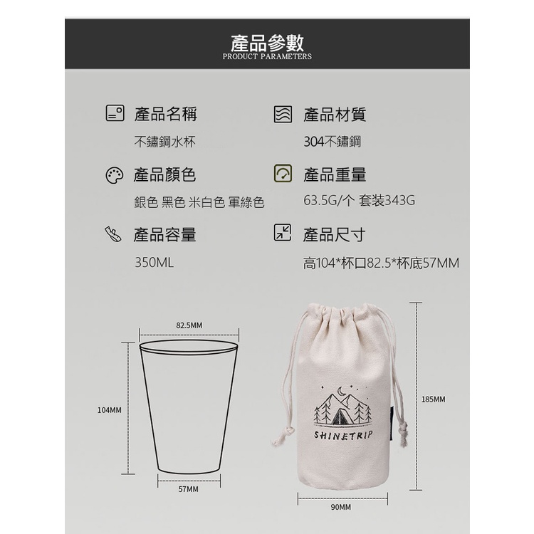 戶外露營304不銹鋼啤酒杯水杯咖啡杯4件組