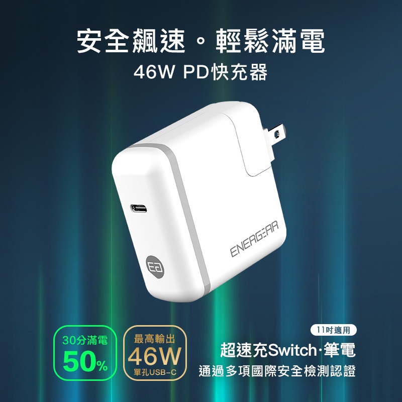 【ENERGEAR 安杰爾】46W Type-C PD快充 充電器