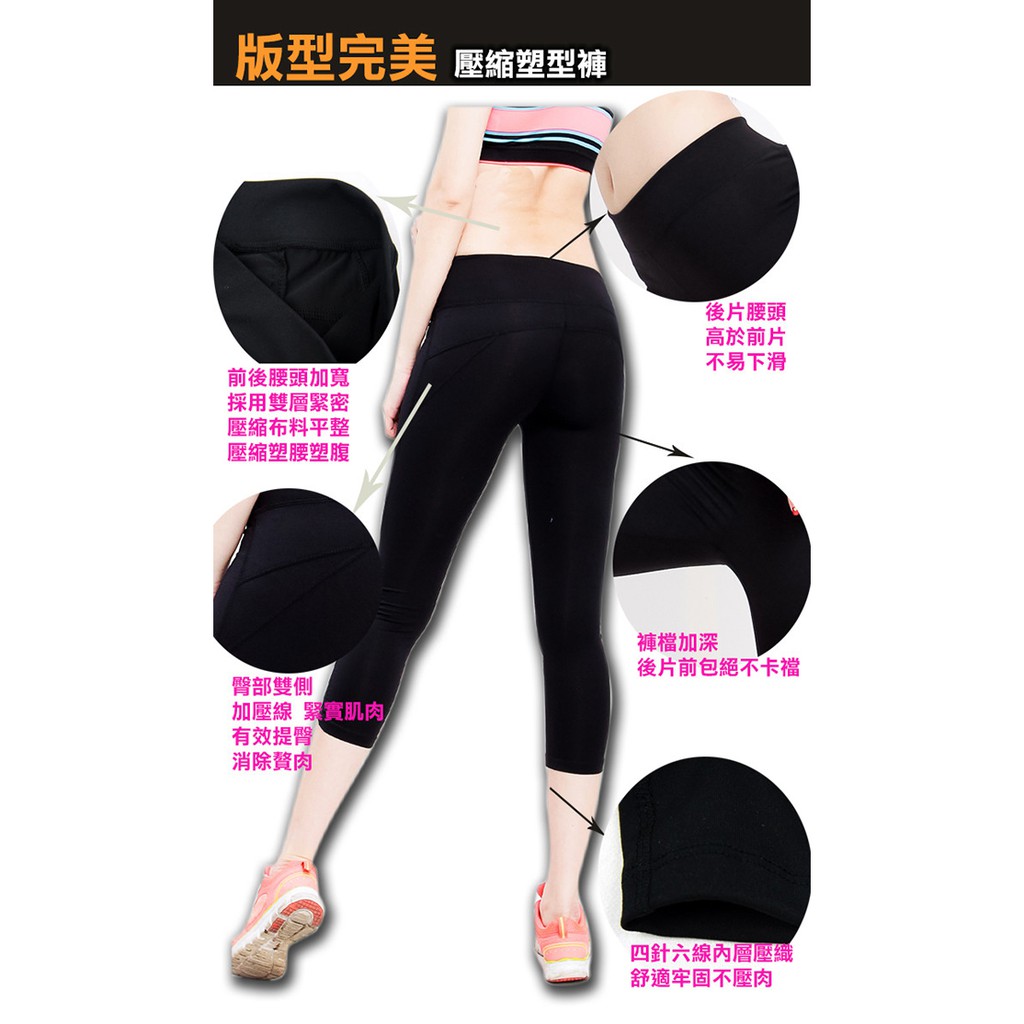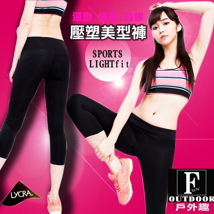 【戶外趣】塑腰美型褲 極速乾女爆汗褲萊卡透氣防曬路跑褲訓練七分褲(C5511 黑色)