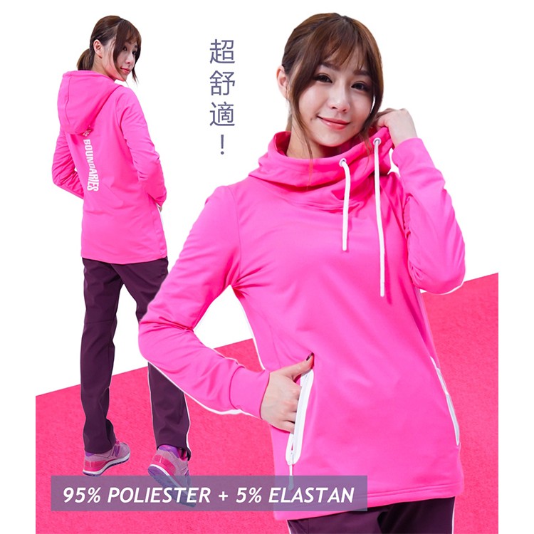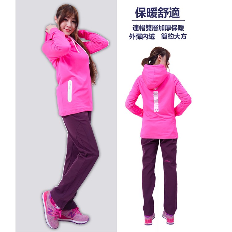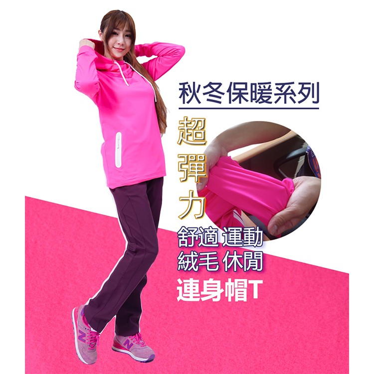 【戶外趣】秋冬超彈力舒適絨毛運動休閒連身保暖帽T(C1323 玫紅)