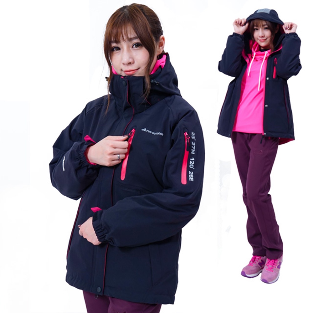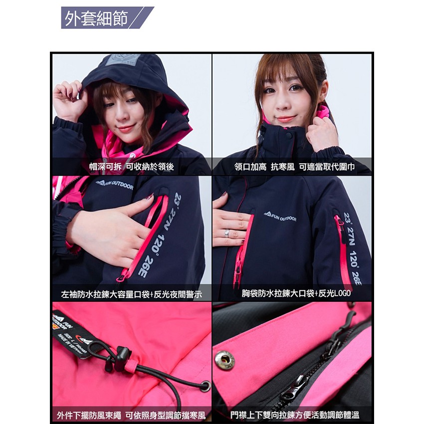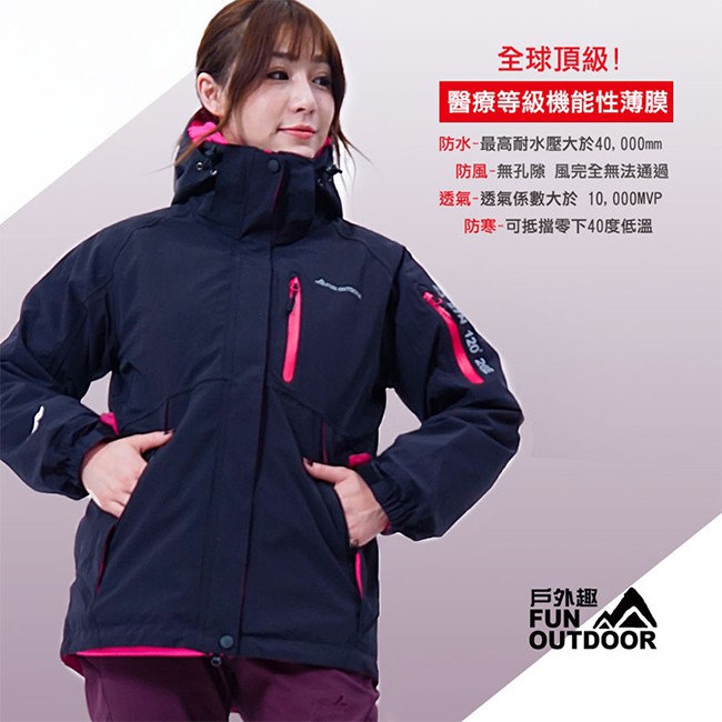 【戶外趣】女秋冬國際專業級極地禦寒高防水兩件式防風外套(DJL001 黑玫)