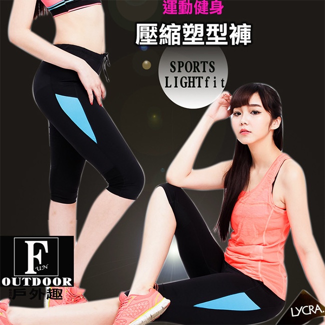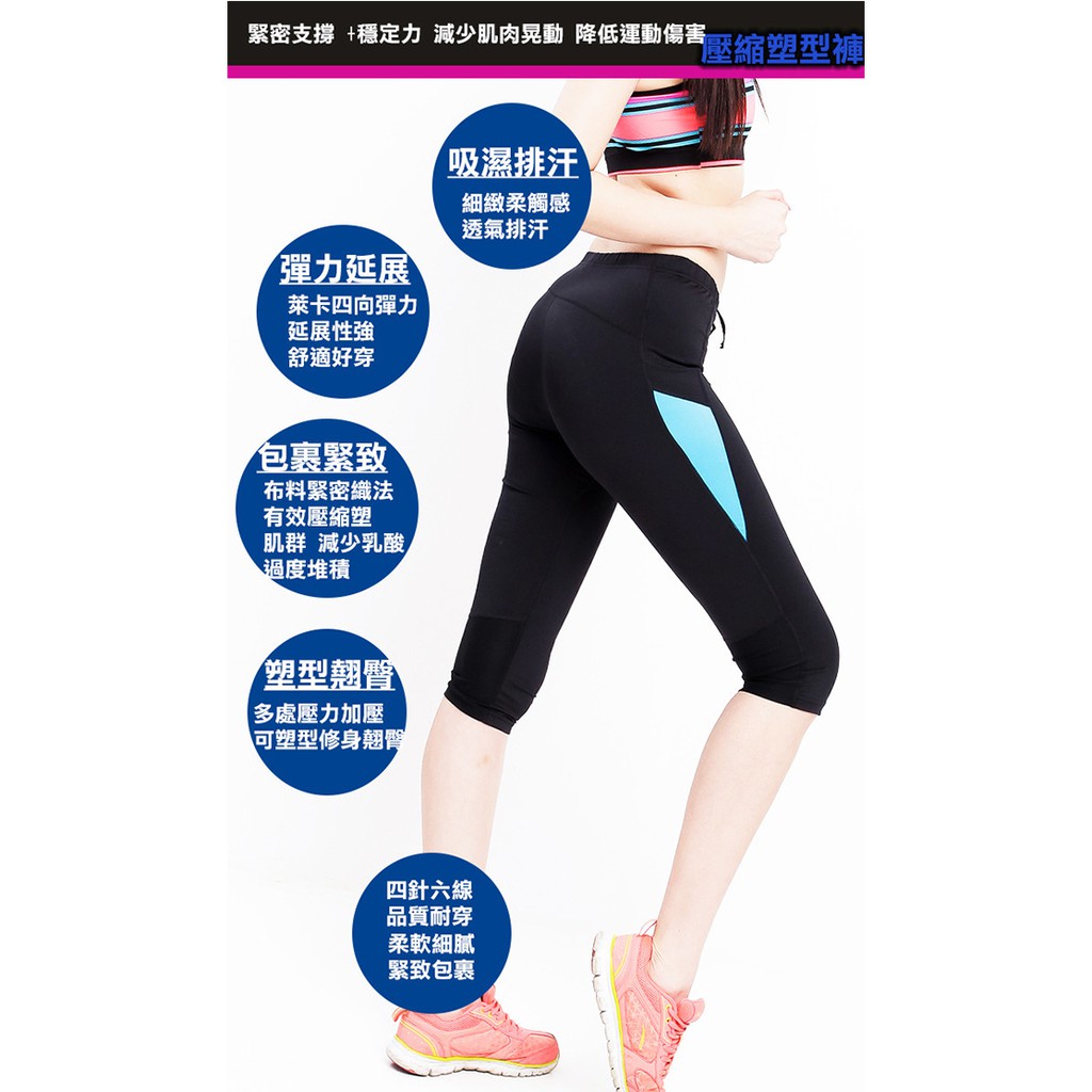 【戶外趣】 塑腰美型褲 極速乾女爆汗褲萊卡透氣防曬路跑褲訓練七分褲(C5611 黑拼藍)