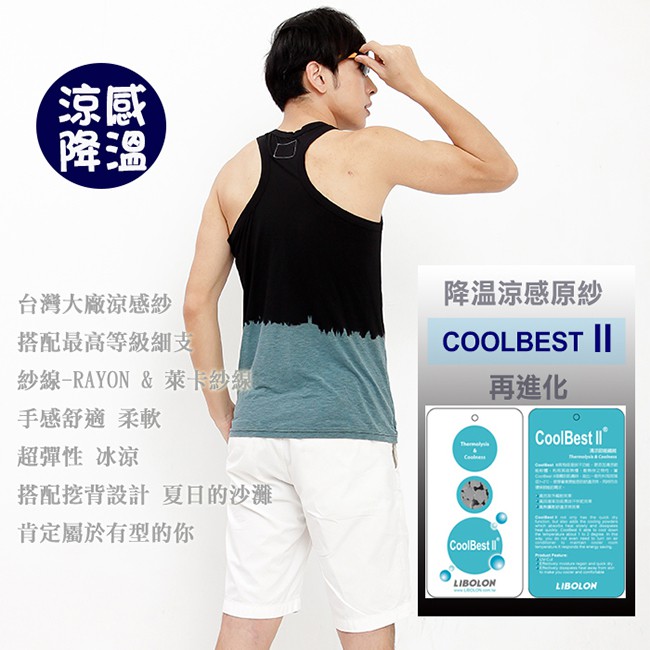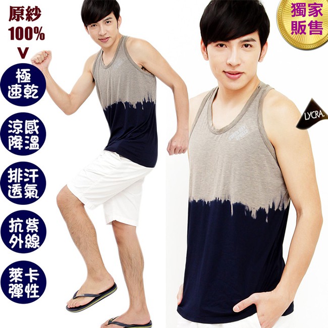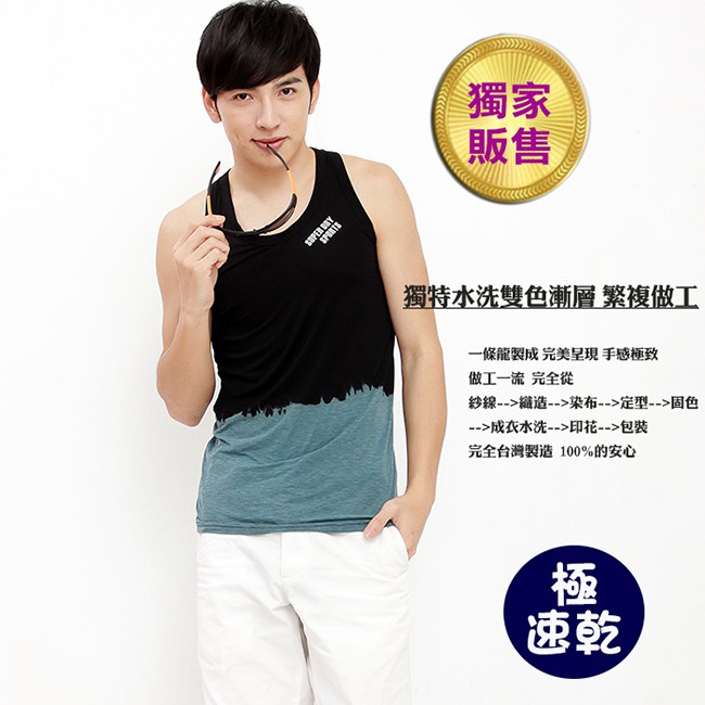 【戶外趣】雙色漸層涼感彈性排汗快乾抗UV背心(D1505 黑藍/黑灰/丈青) 合身版型