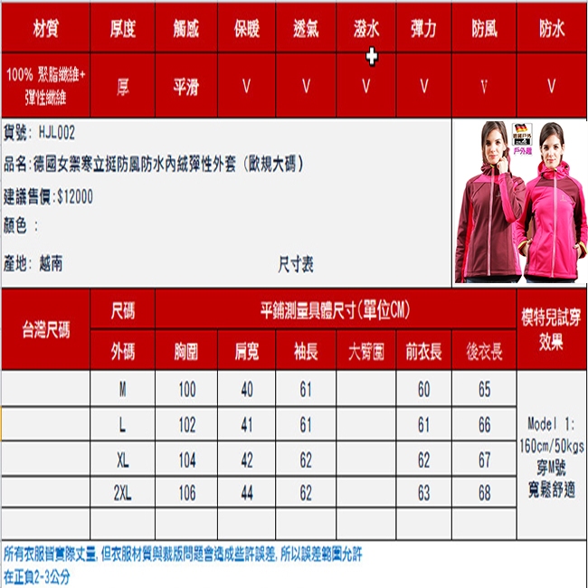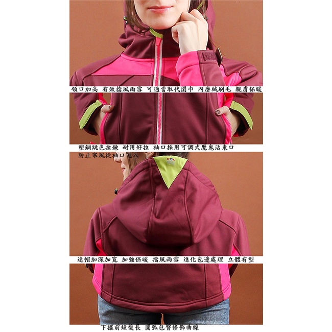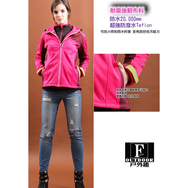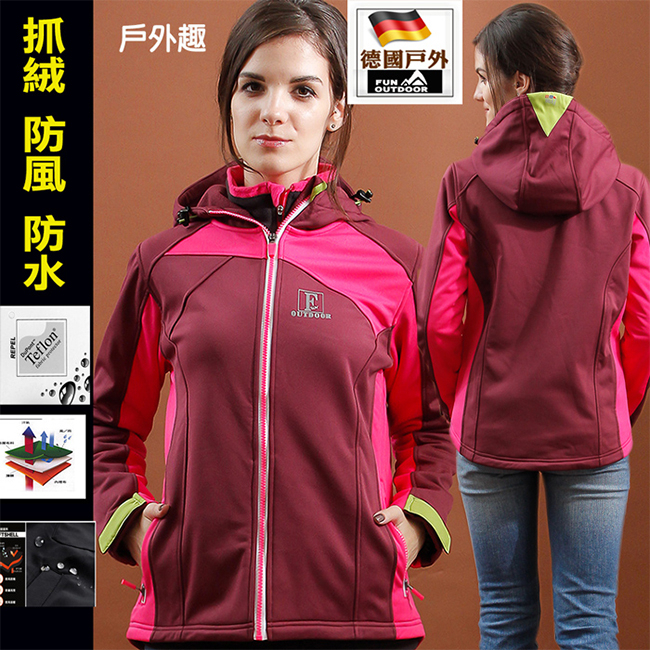【戶外趣】防風外套 女連帽款頂級防水透濕彈性軟殼外套/禦寒刷毛保暖外套 (HJL002S )