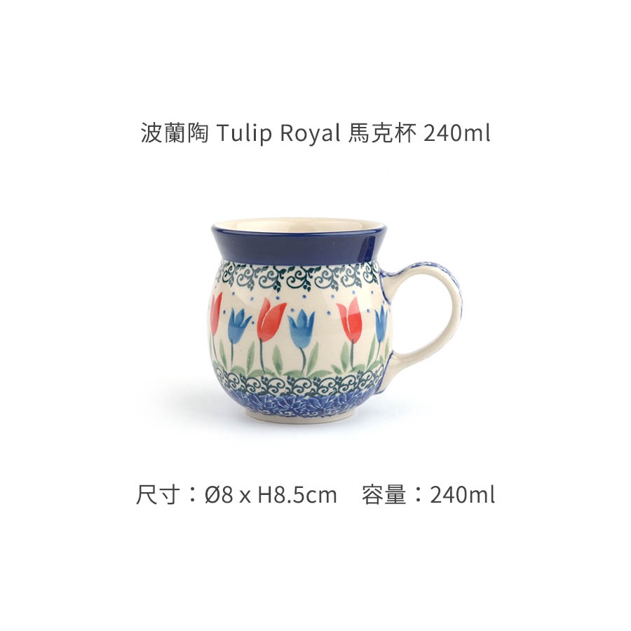 【波蘭陶】Tulip Royal馬克杯240ml《泡泡生活》微波烤箱洗碗機 原裝進口 手工製 杯瓶