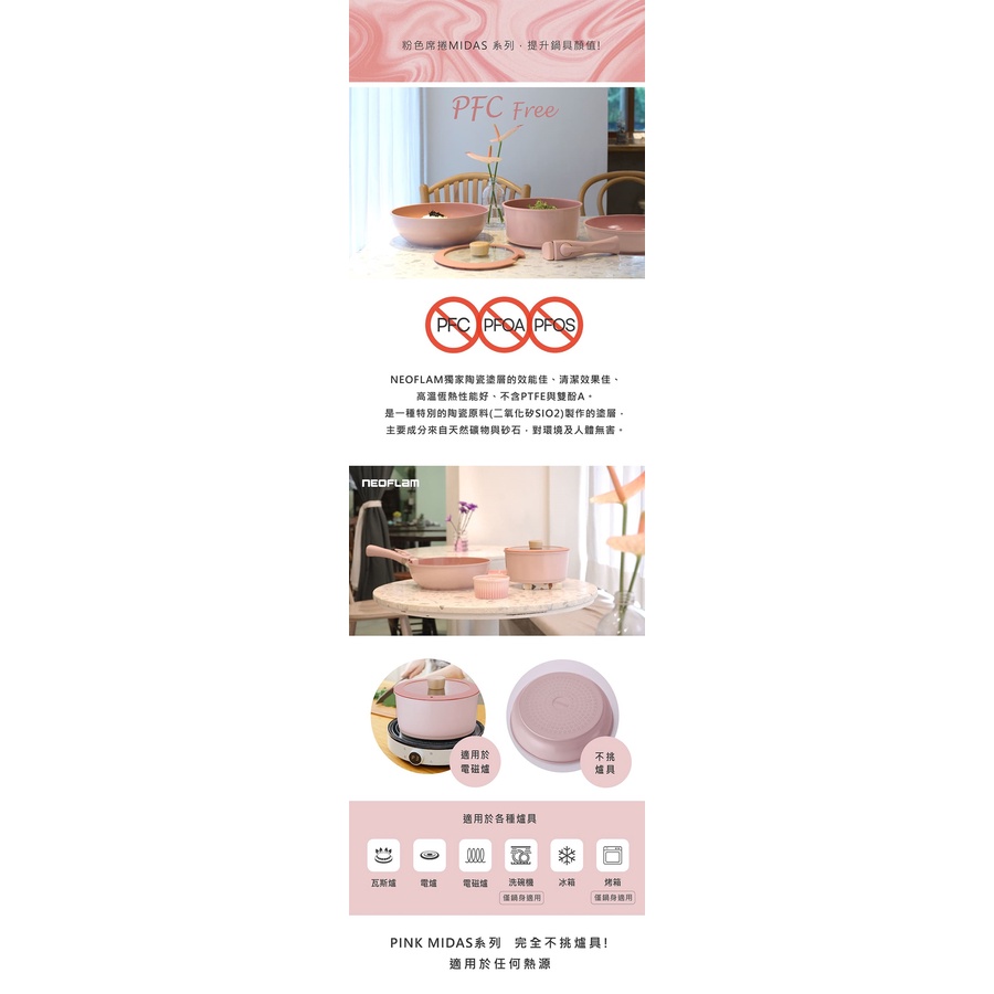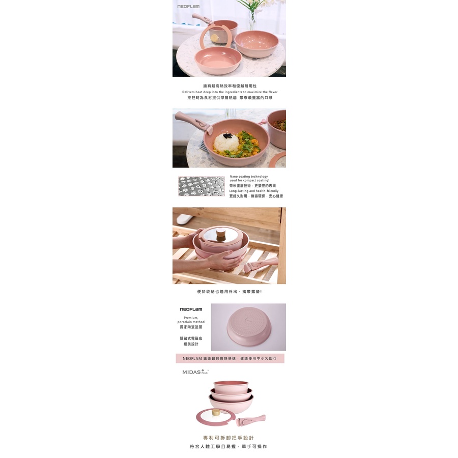 【韓國NEOFLAM】Midas Plus陶瓷塗層鍋7件組-粉紅色《泡泡生活》不沾鍋 炒鍋平底鍋 好收納
