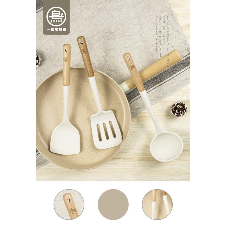 [限時下殺]【一鳥】白矽膠櫸木料理鍋鏟/湯勺 - 共3款《泡泡生活》不沾鍋用 白色矽膠 耐高溫 現貨 餐廚用品 料理工具