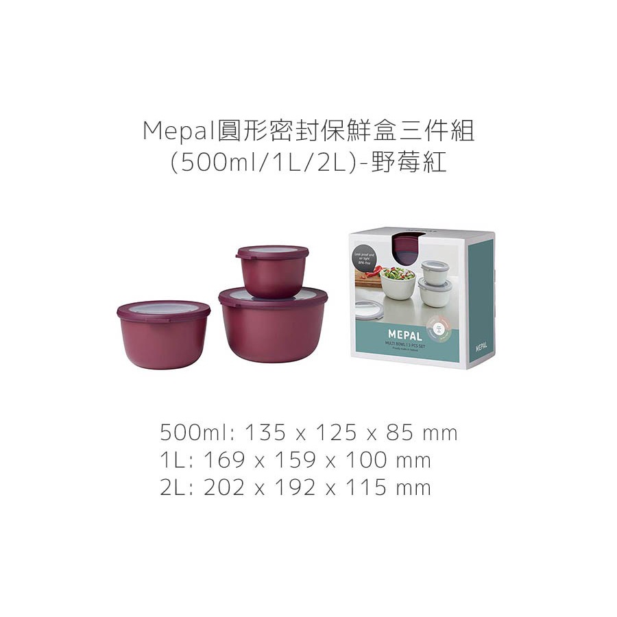 【荷蘭Mepal】圓形密封保鮮盒三件組 500ml+1L+2L-共4色《泡泡生活》便當盒 禮盒組
