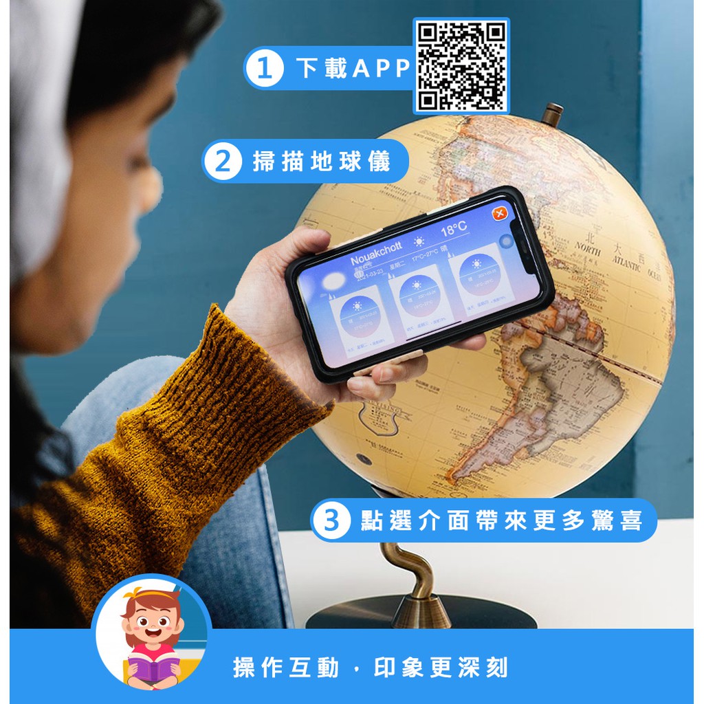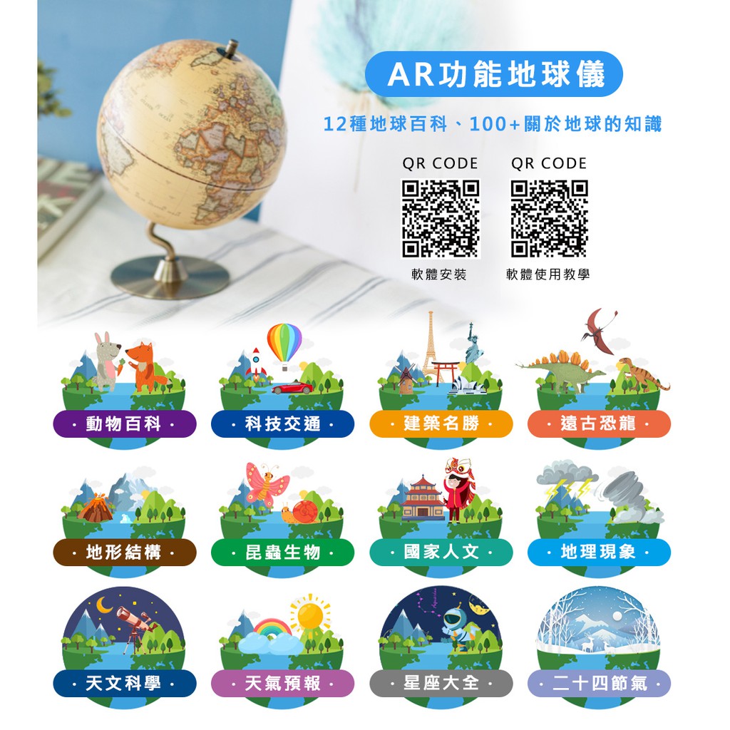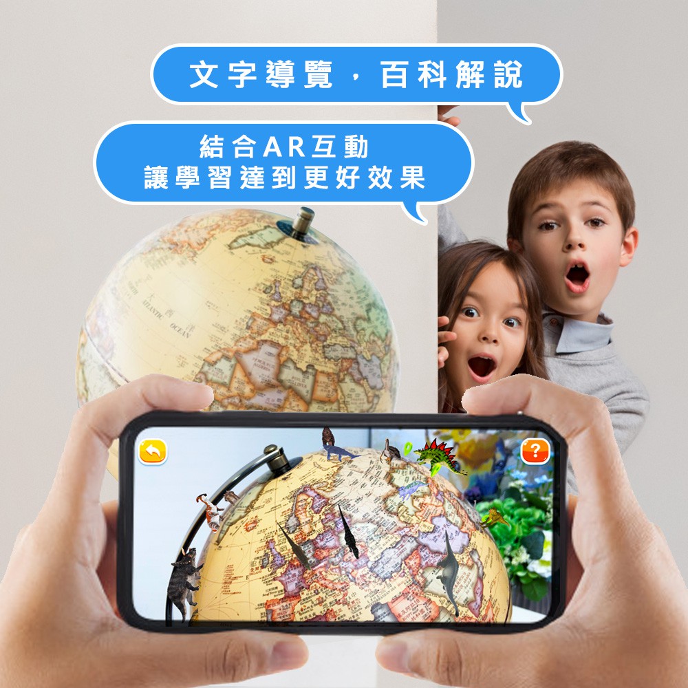 【SkyGlobe】AR互動款 12吋古典仿古木質地球儀-繁中英文對照(附燈)《泡泡生活》