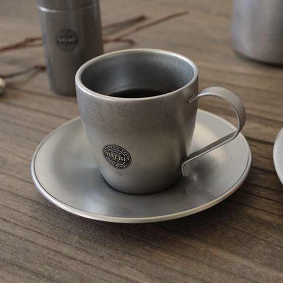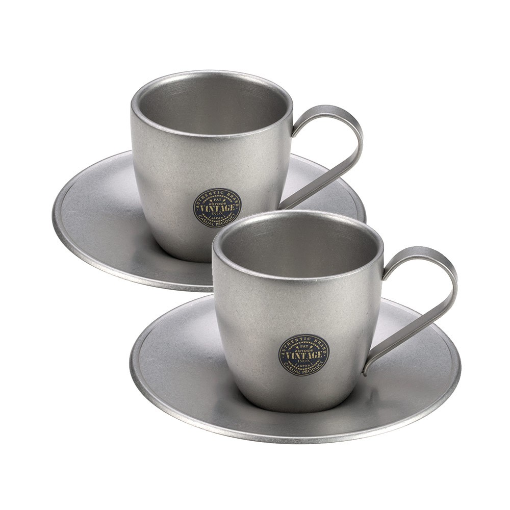 【日本 AOYOSHI 青芳製作所】 仿舊雙層不鏽鋼杯盤2入組 100ml《泡泡生活》