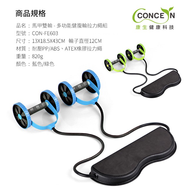 康生CONCERN 馬甲雙輪 多功能健腹輪拉力繩組 CON-FE603