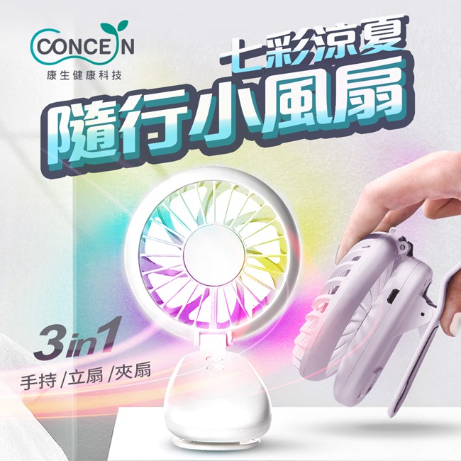 CONCERN康生 3in1七彩涼夏隨行小涼扇 CON-EL100 兩色可選 全新現貨
