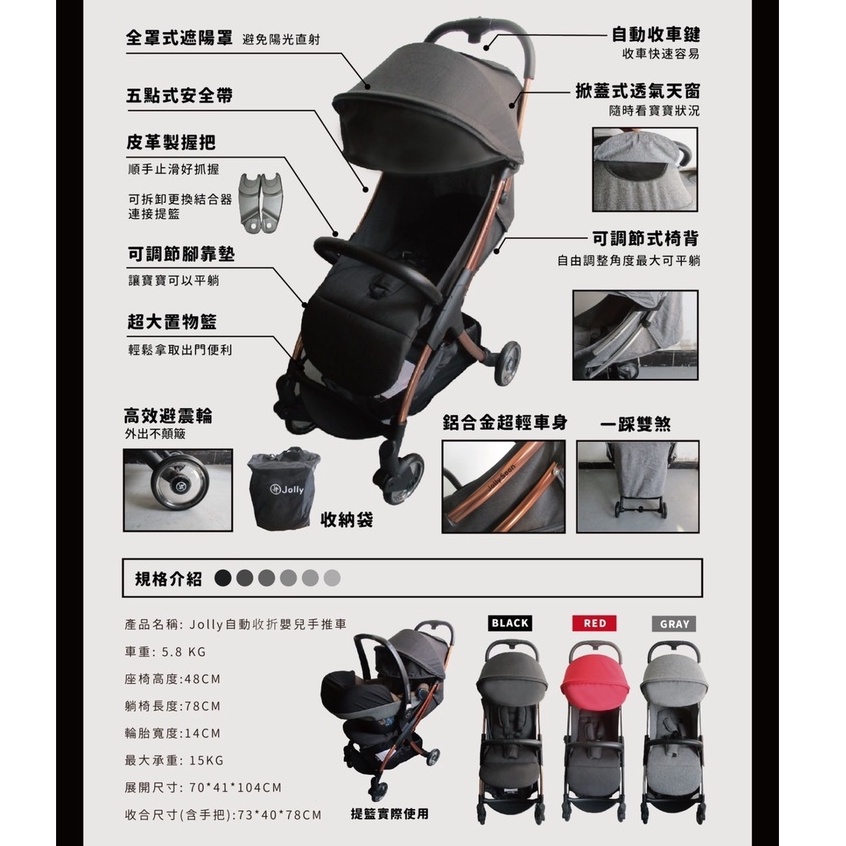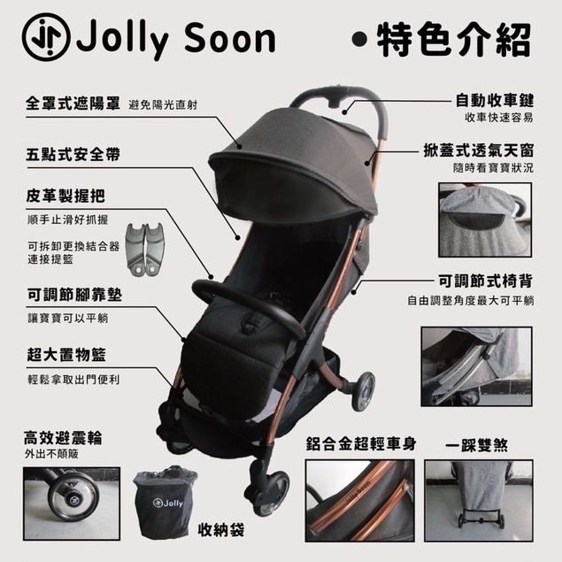 Jolly Soon 自動收折推車 送大全配:蚊帳、雨罩、收納袋、前扶手、提籃結合器