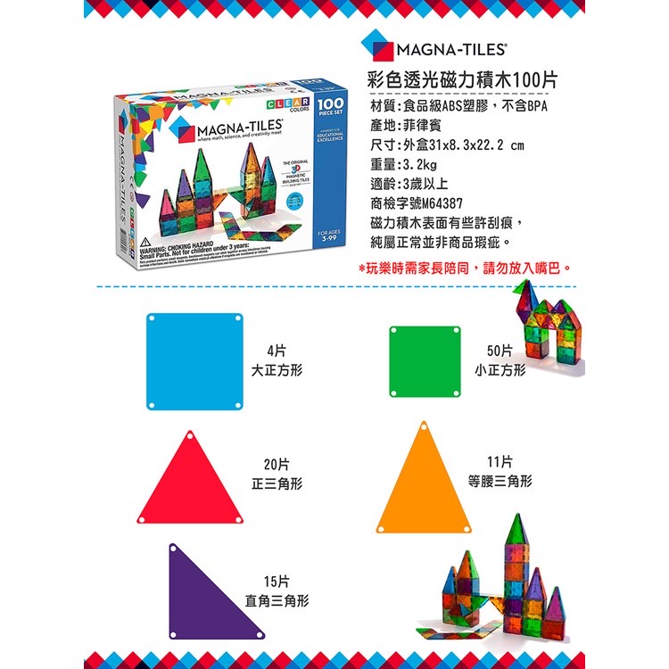 Magna-Tiles®彩色透光磁力積木 可透過光線的彩色磁性積木