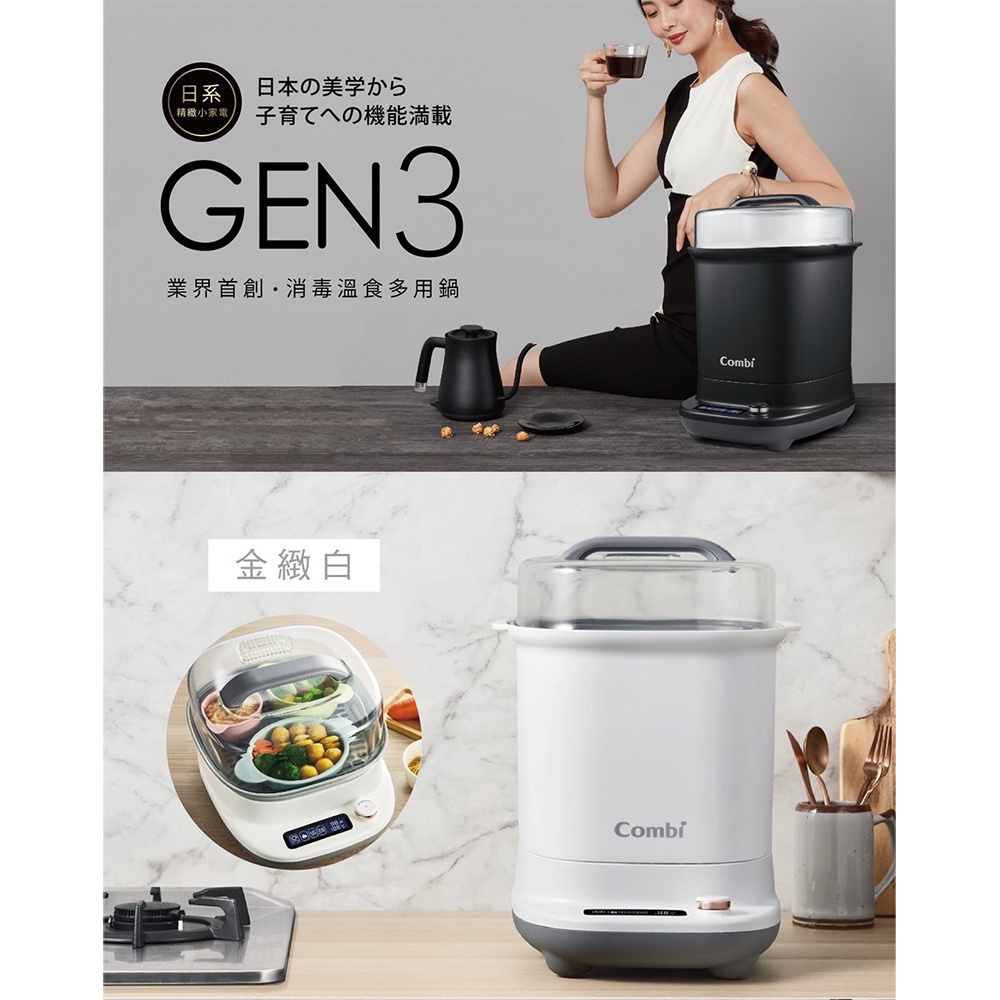 Combi GEN3消毒溫食多用鍋 (金緻白/曜石黑/赤焰紅/寧靜藍) 台灣製造 Combi康貝原廠公司貨商品檢驗合格