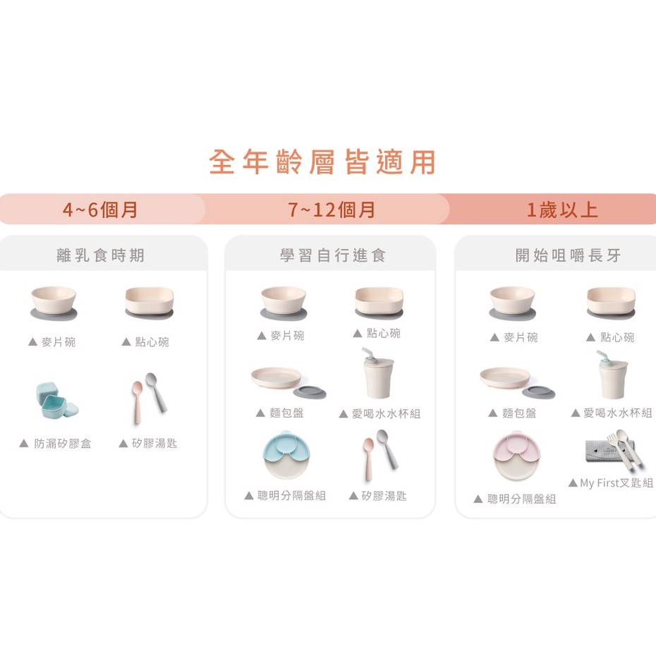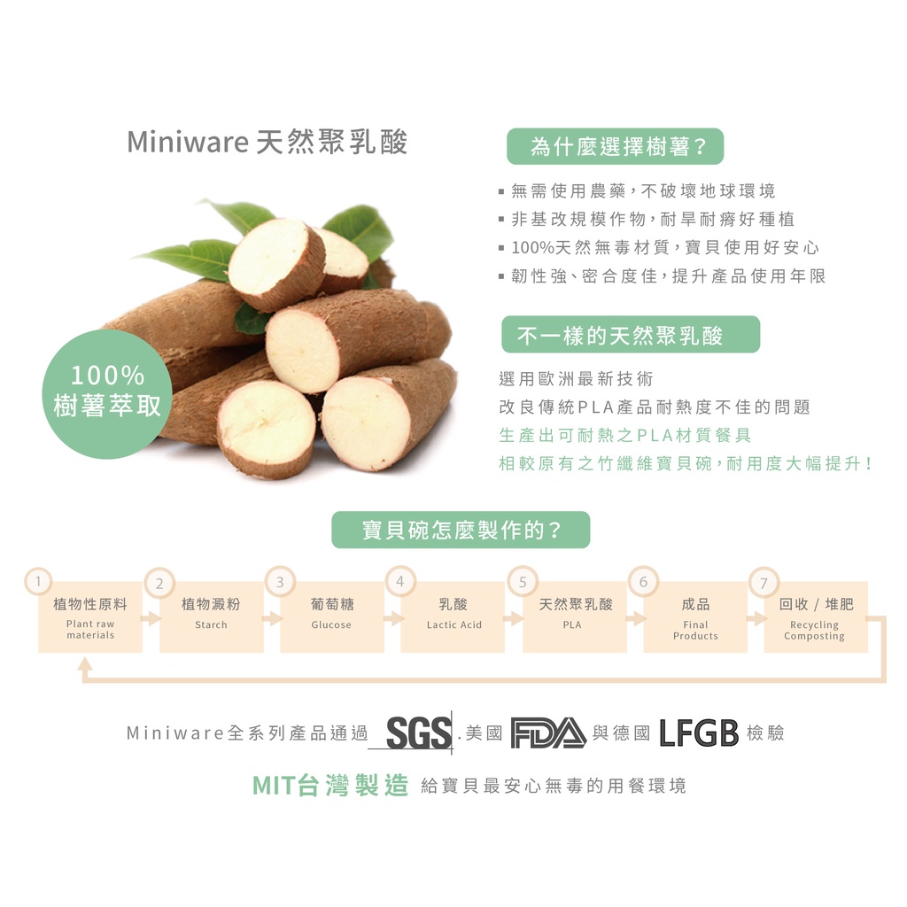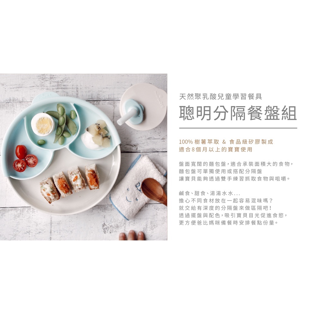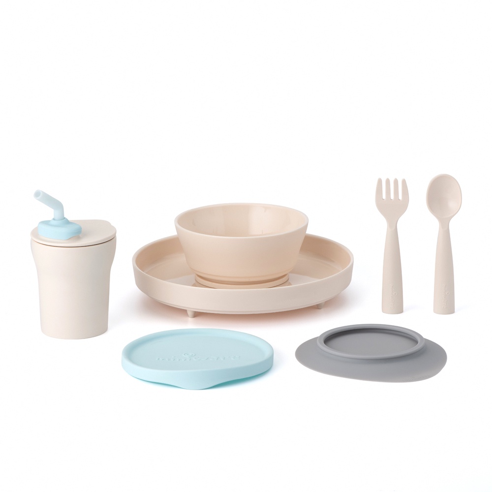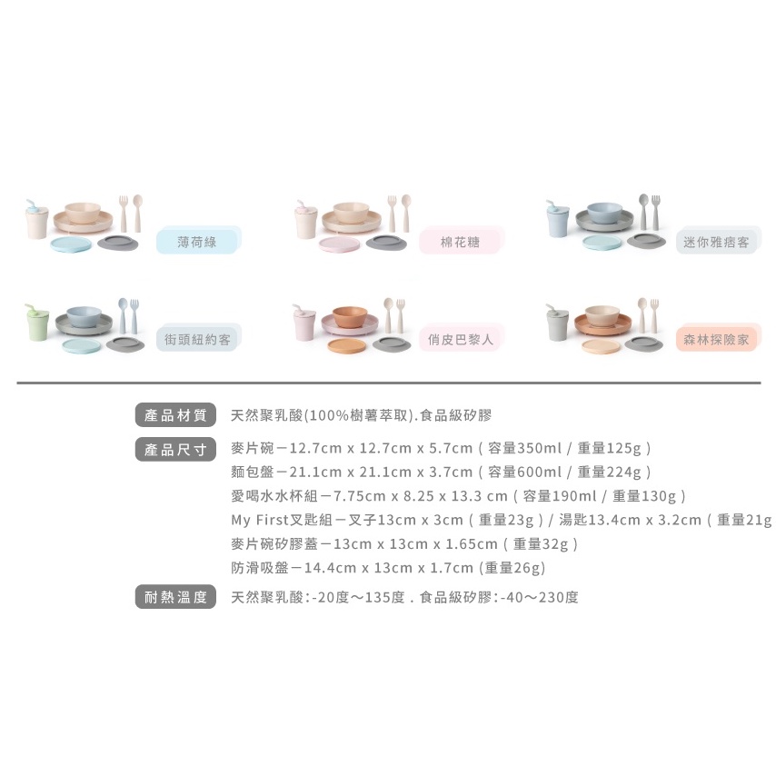 miniware 天然聚乳酸兒童學習餐具系列 天然聚乳酸小食客六入組 分隔餐盤組 兒童碗盤組 點心碗組 水杯組 叉匙組