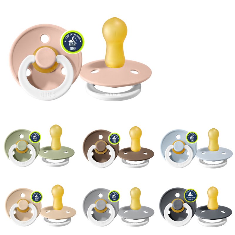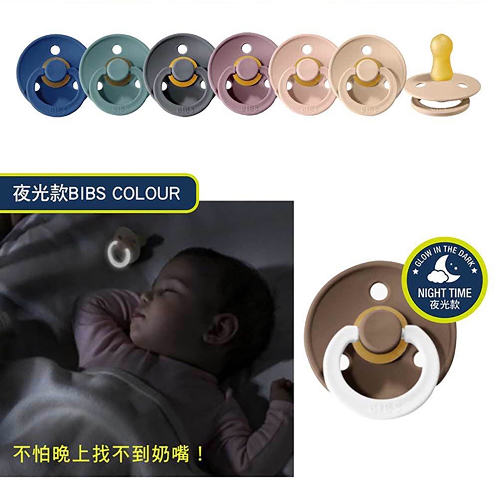 BIBS COLOUR 丹麥乳膠安撫奶嘴-夜光款-單入(0-6m/6-18m) [現貨] 夜光款兩入+固齒器禮盒組