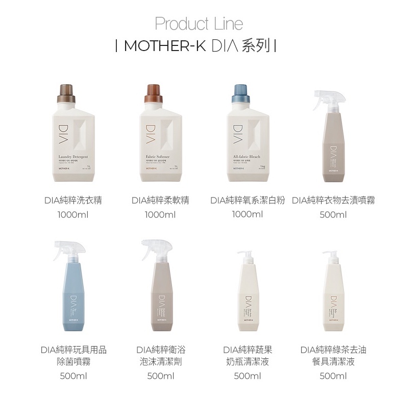 MOTHER-K DIA 純粹洗衣精 柔軟精 衣物去漬劑 衛浴清潔劑 蔬果奶瓶清潔液 去油餐具清潔液 玩具用品除菌噴霧