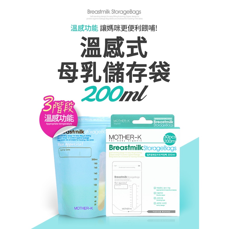 MOTHER-K 韓國溫感母乳袋200mL 30入/90入