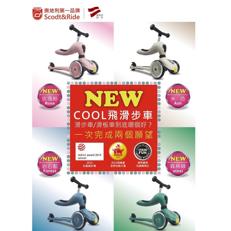 Scoot&Ride 奧地利Cool飛二合一滑步車/滑板車 [現貨]黑金限定款 岩石藍 玫瑰粉 藍莓 蜜桃 萊姆 奇異果