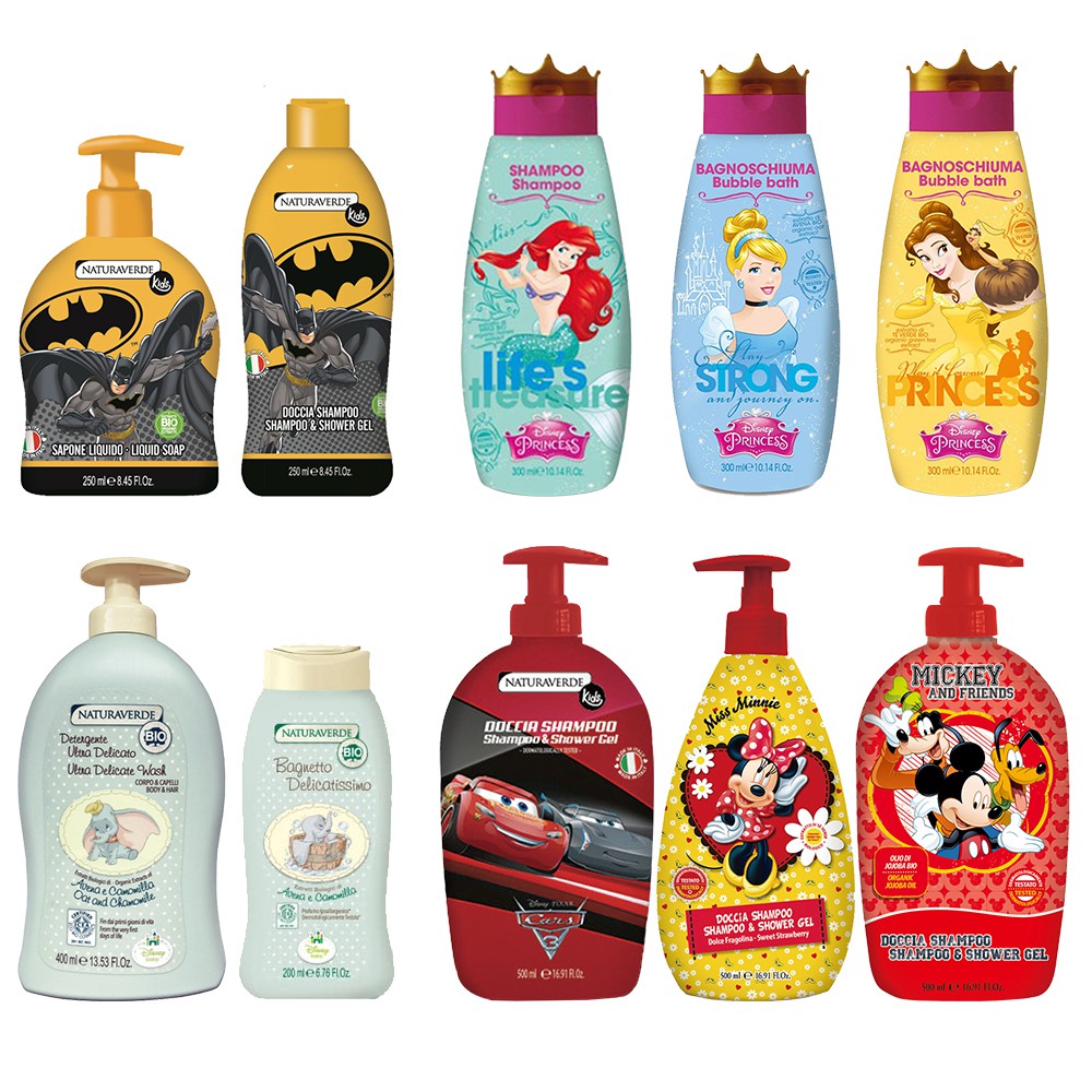 Naturaverde自然之綠 迪士尼兒童洗髮沐浴雙效露 義大利製造原裝進口 泡泡沐浴露 小飛象 冰雪奇緣 麥坤 蝙蝠俠