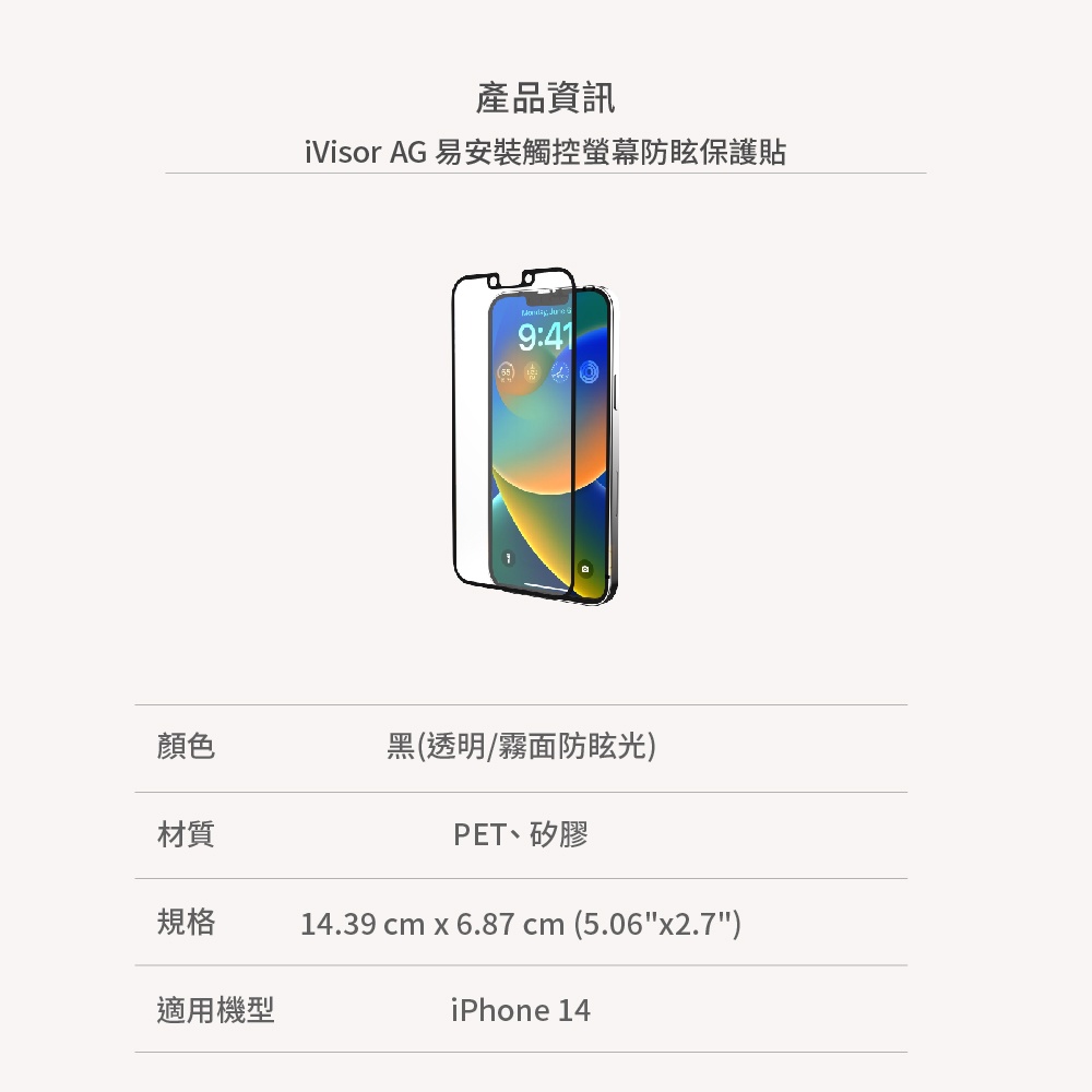 Moshi iPhone 14 iVisor AG易安裝觸控防眩螢幕保護貼