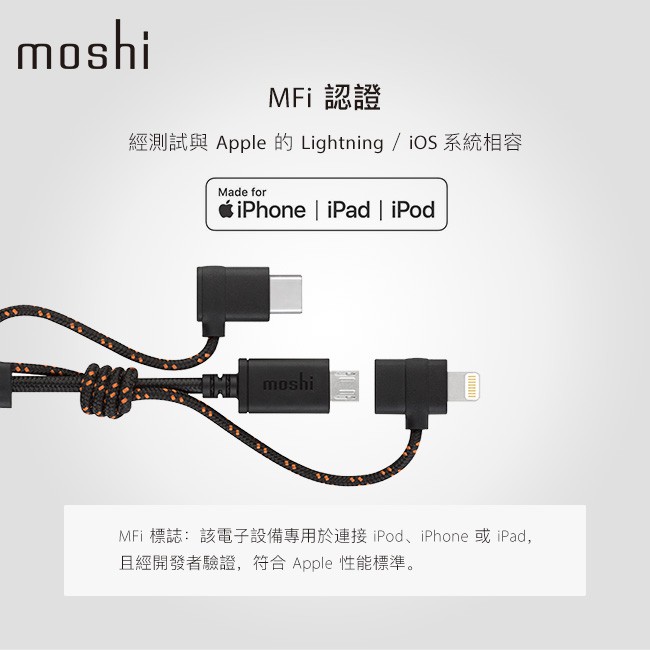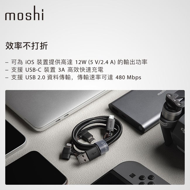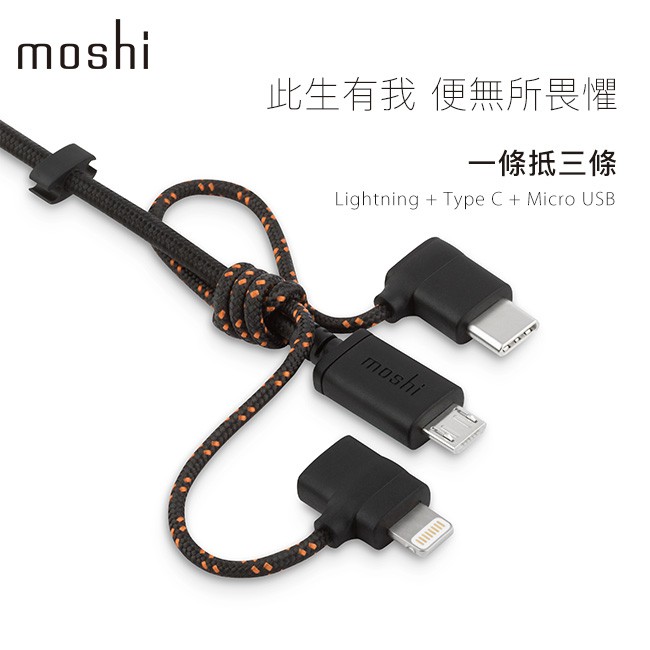 Moshi 三合一萬用充電線 USB-C Lightning MicroUSB iPhone手機 三合一 MFi