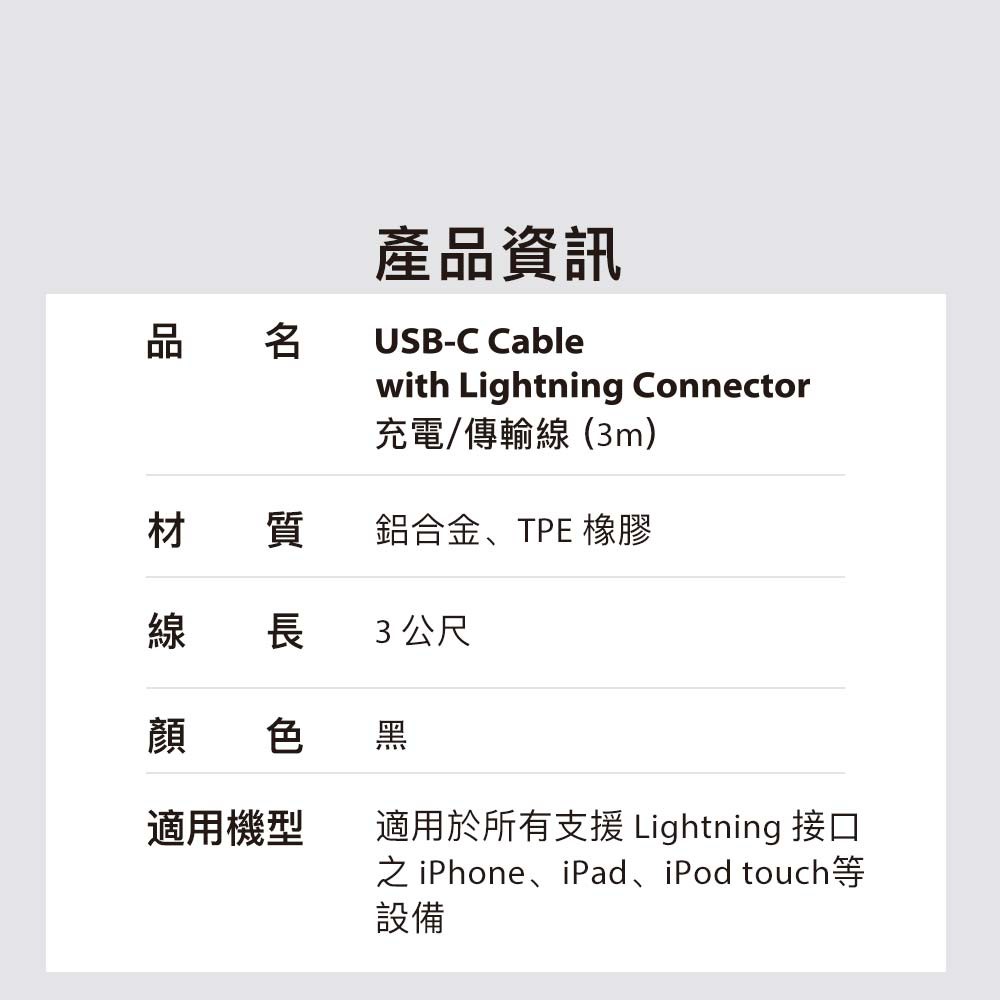 Moshi USB-C to Lightning 充電傳輸線(3m)iPhone PD快充 需搭配 USB-C充電器