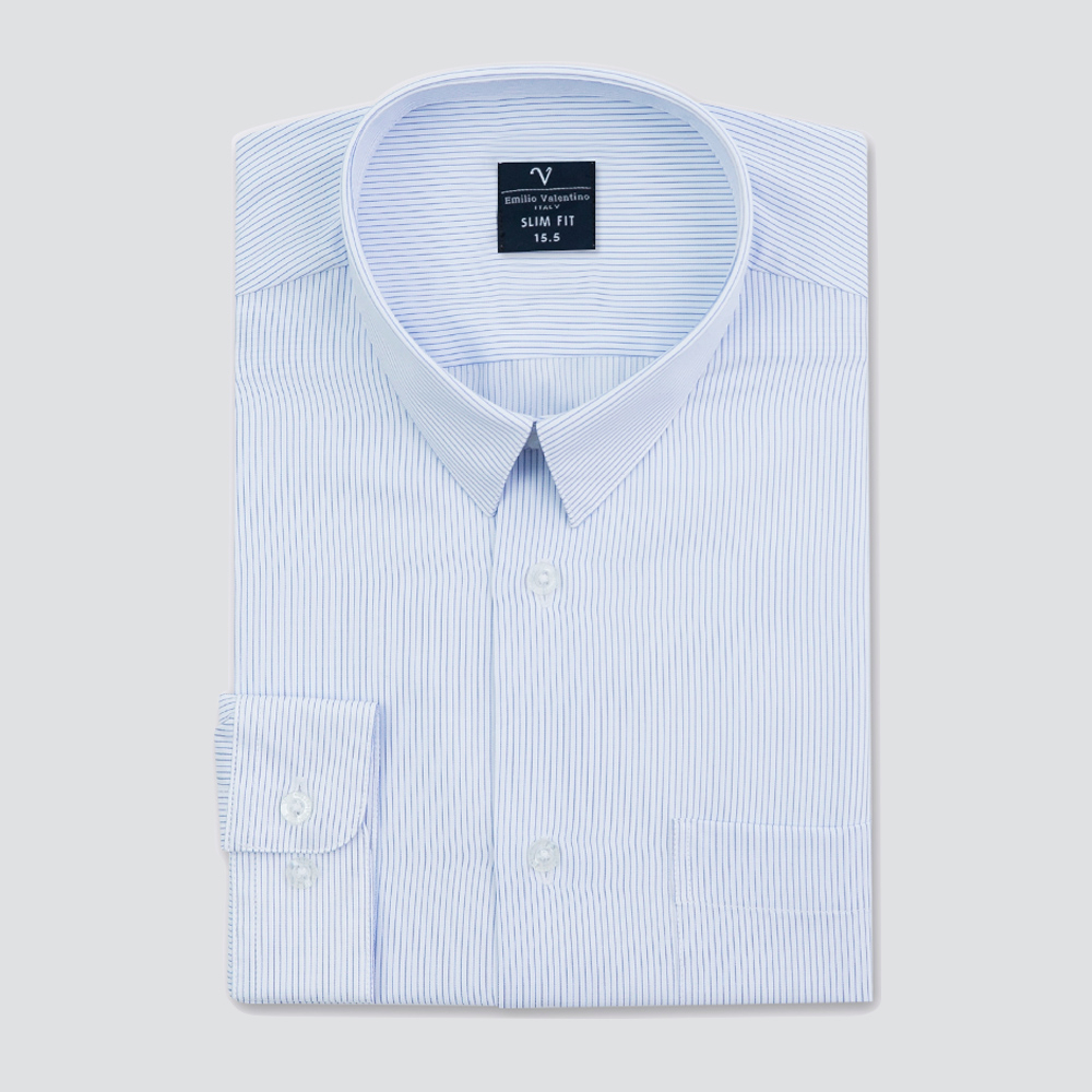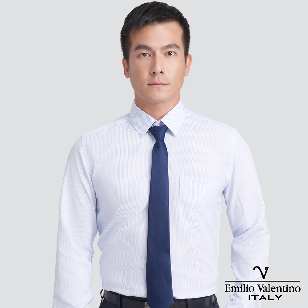 【Emilio Valentino】修身條紋長袖襯衫-藍條