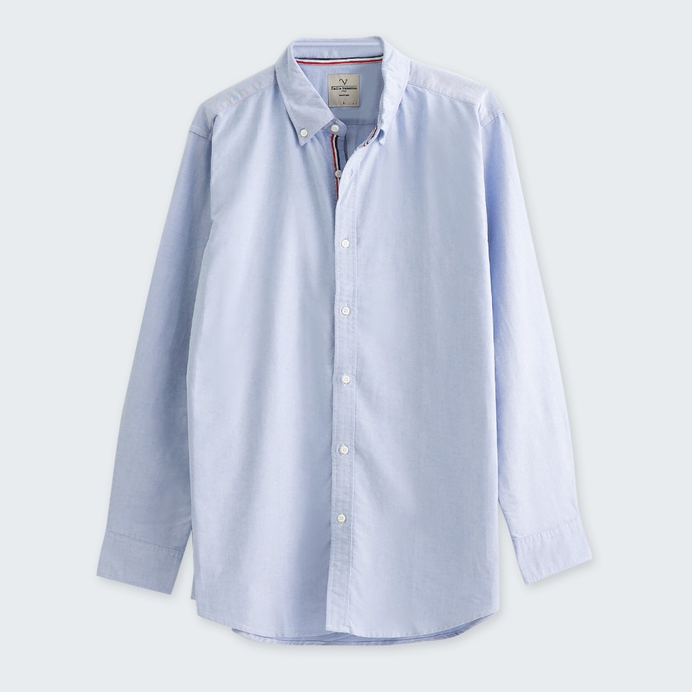 【Emilio Valentino】經典牛津長袖襯衫-藍