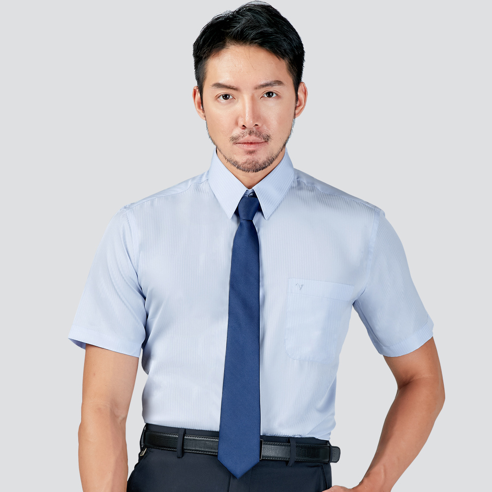 【Emilio Valentino】吸濕排汗條紋短袖襯衫-藍