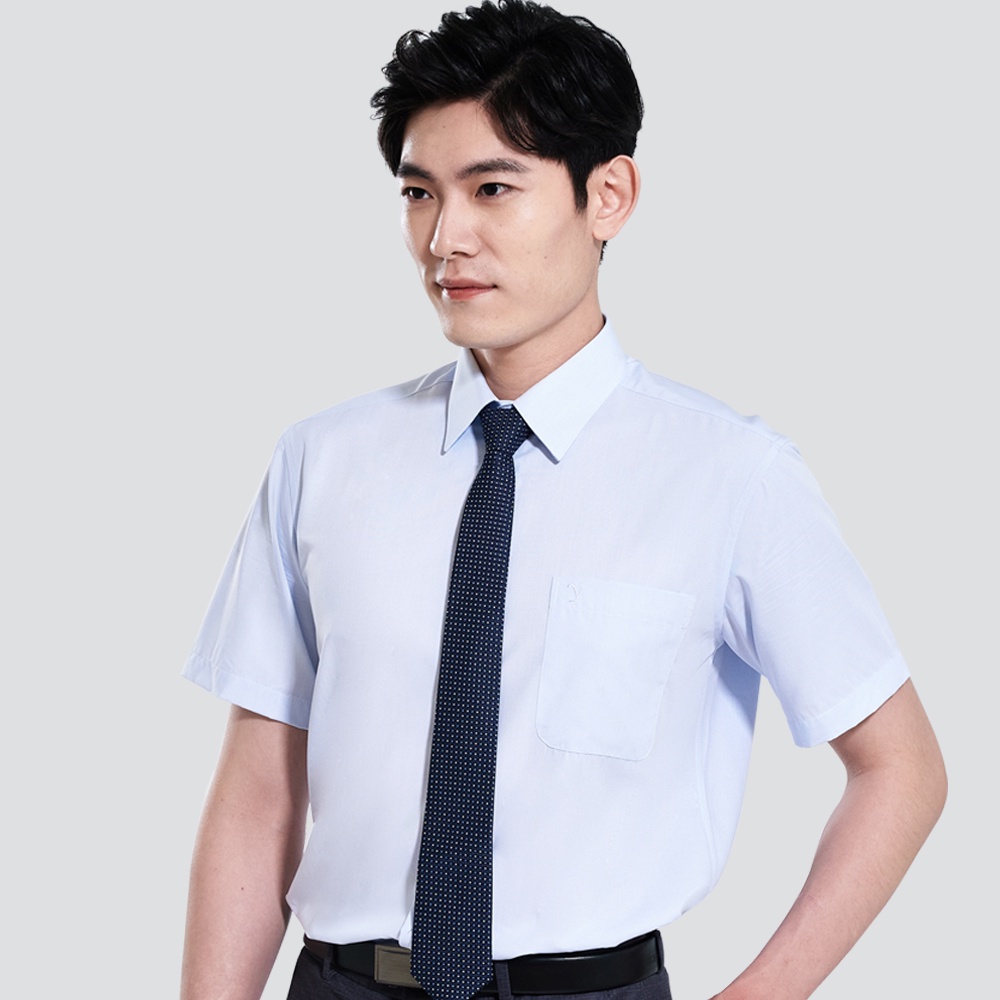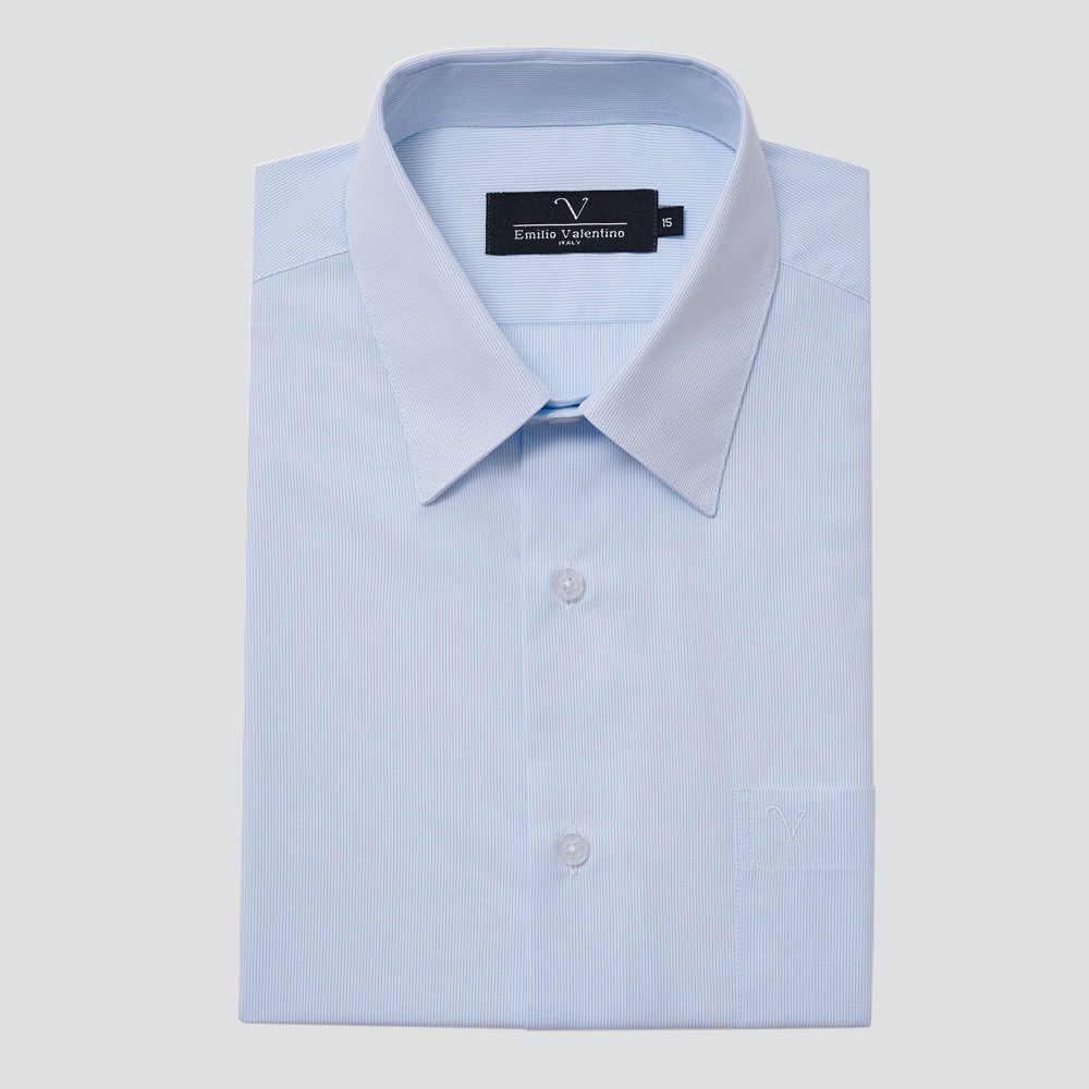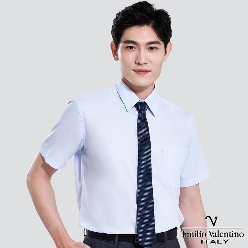 【Emilio Valentino】經典條紋短袖襯衫-藍條