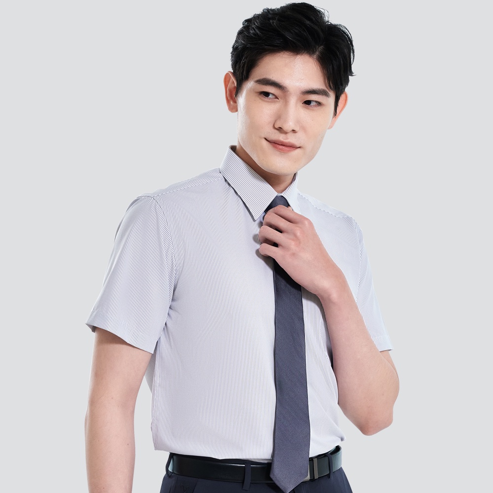 【Emilio Valentino】經典條紋短袖襯衫-灰條