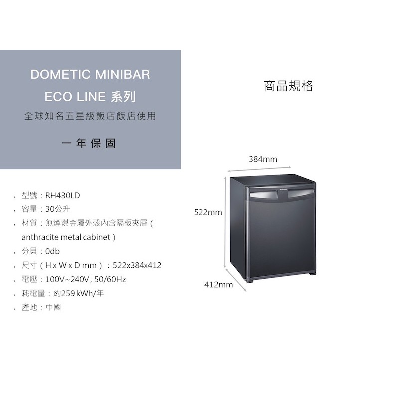 【DOMETIC】吸收式製冷小冰箱 (RH430 LD)