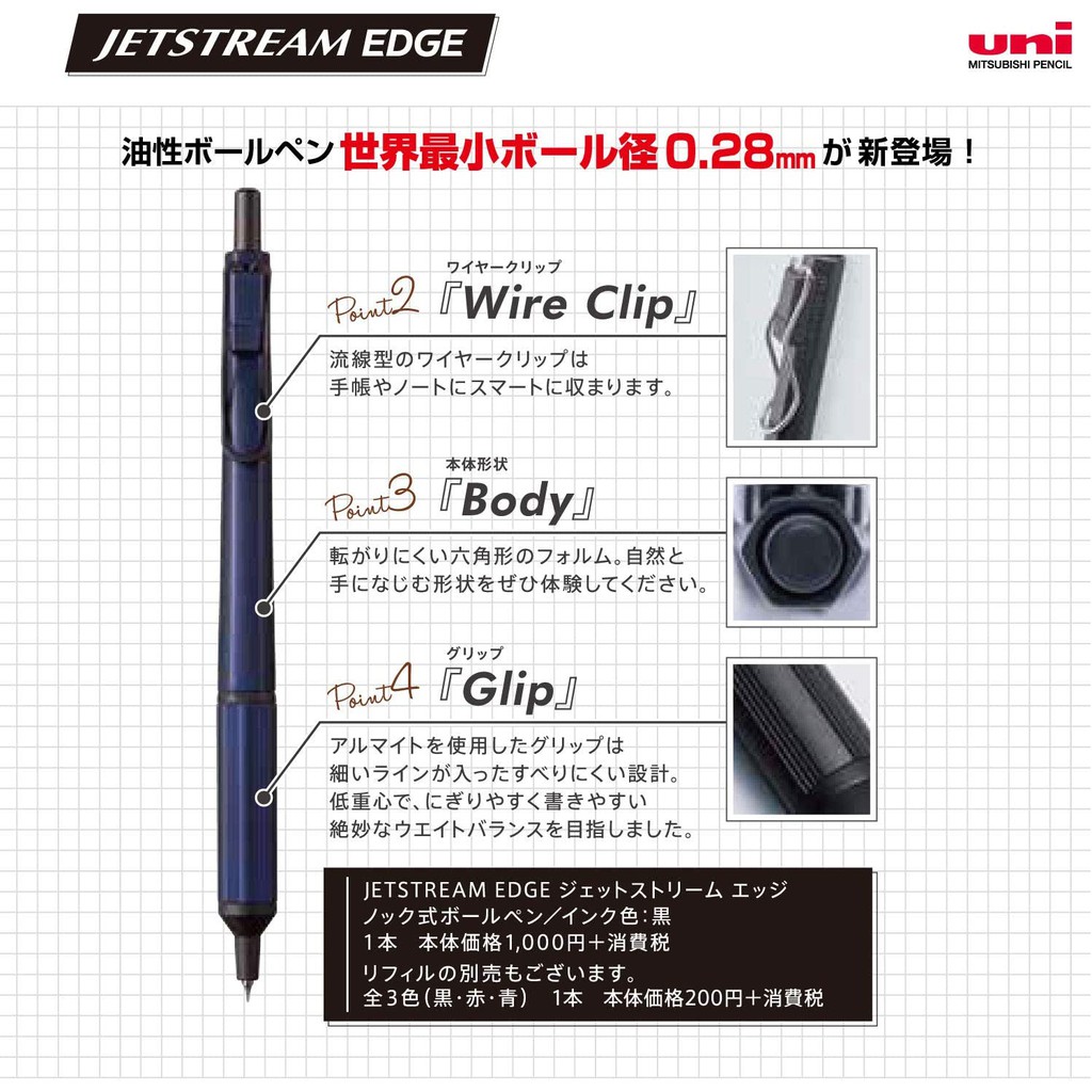 日本 uni三菱《JETSTREAM EDGE 0.28 / 0.38自動油性筆》單色及三色筆 |明進文房具