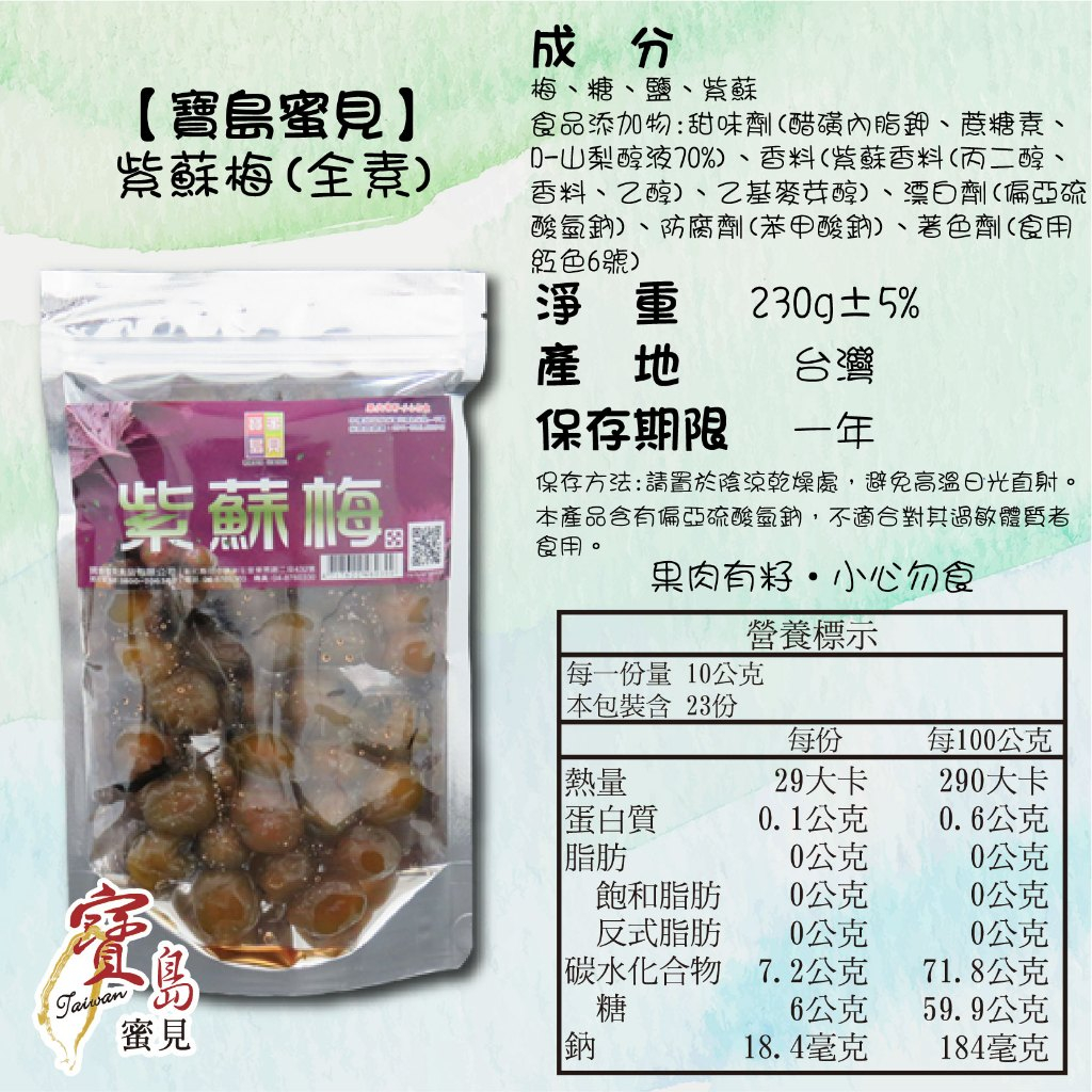 【寶島蜜見】紫蘇梅 230公克(全素)●寶島蜜餞●梅子●蜜餞●紫蘇