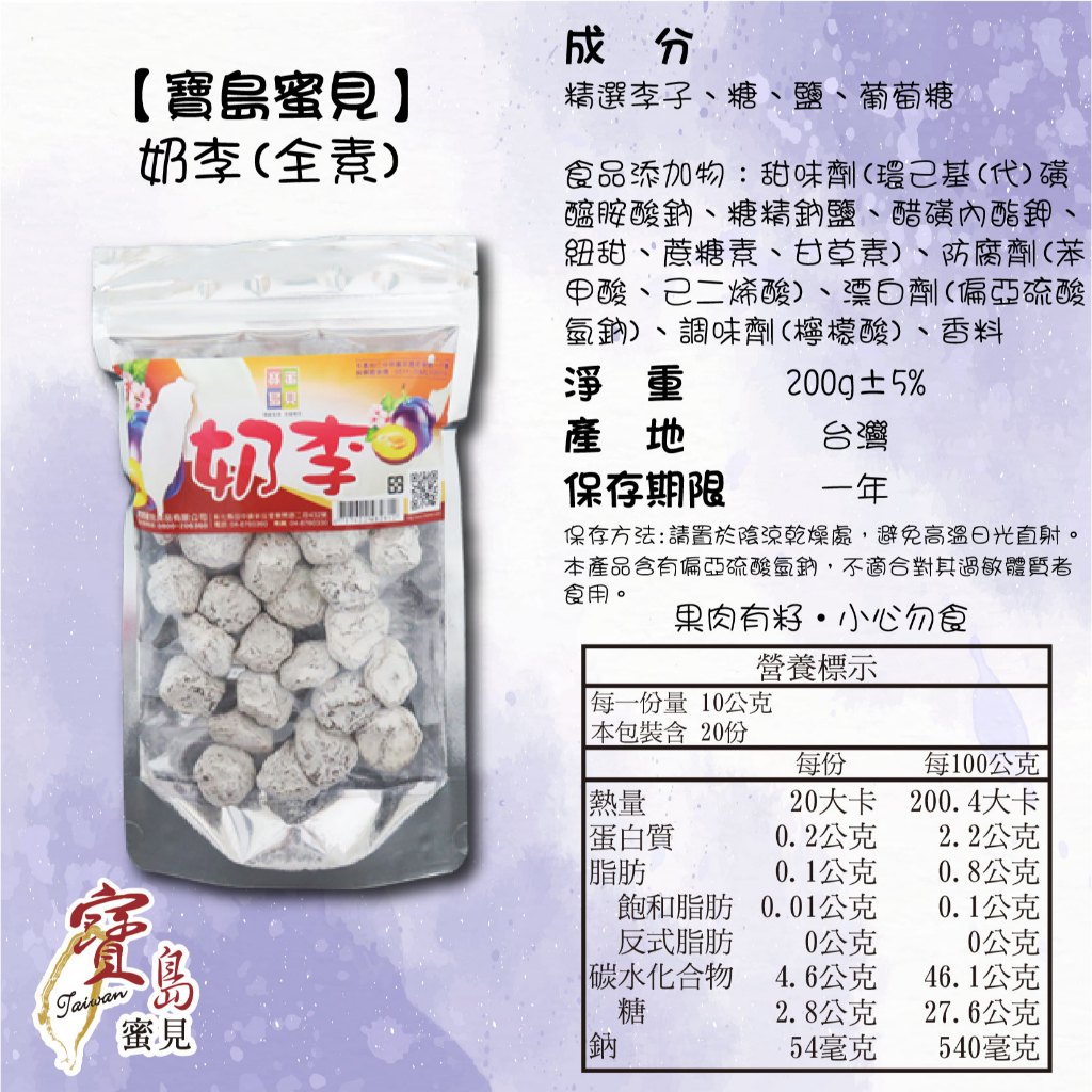 【寶島蜜見】奶李 200公克(全素)●寶島蜜餞●李子