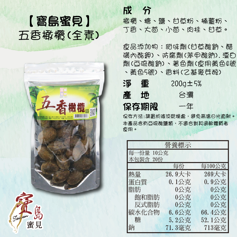 【寶島蜜見】五香橄欖 200公克(全素)●寶島蜜餞●橄欖 五香口味