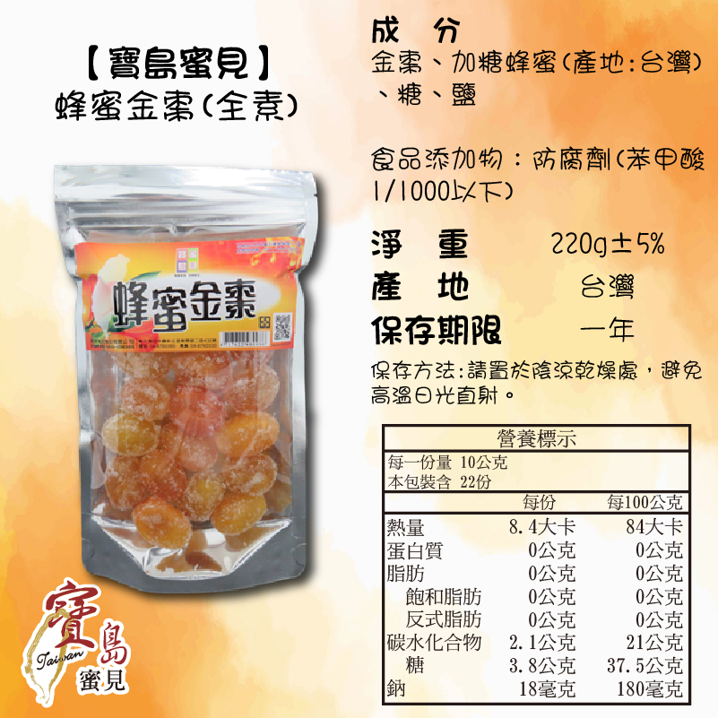 【寶島蜜見】蜂蜜金棗 220公克(全素)●寶島蜜餞●蜂蜜 金棗