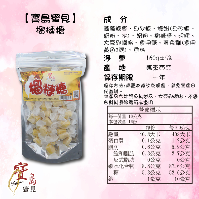 【寶島蜜見】泰國必買●榴槤糖 160公克●寶島蜜餞●糖果