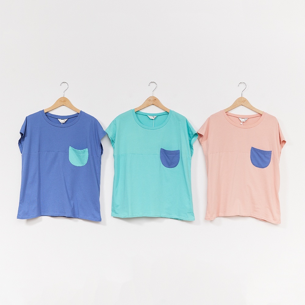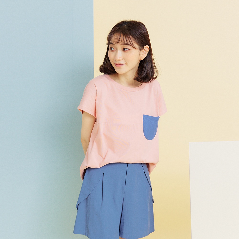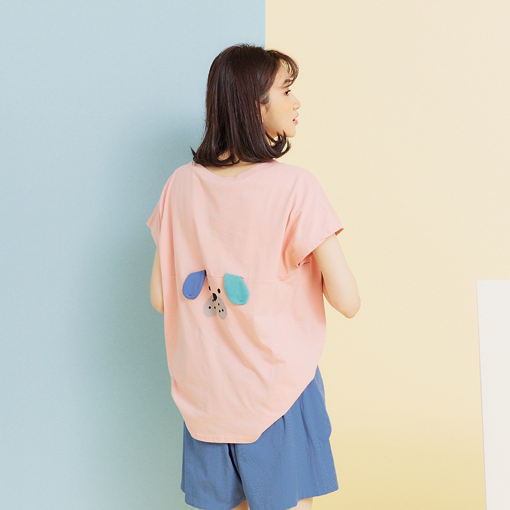 【Dailo】大耳阿狗連袖涼感舒適-女短袖上衣 拼接 藍 粉 綠(三色/版型適中)
