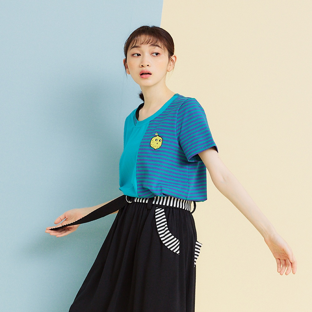 【Dailo】檸檬好害羞剪接-女短袖上衣 拼接 綠(綠色/版型適中)