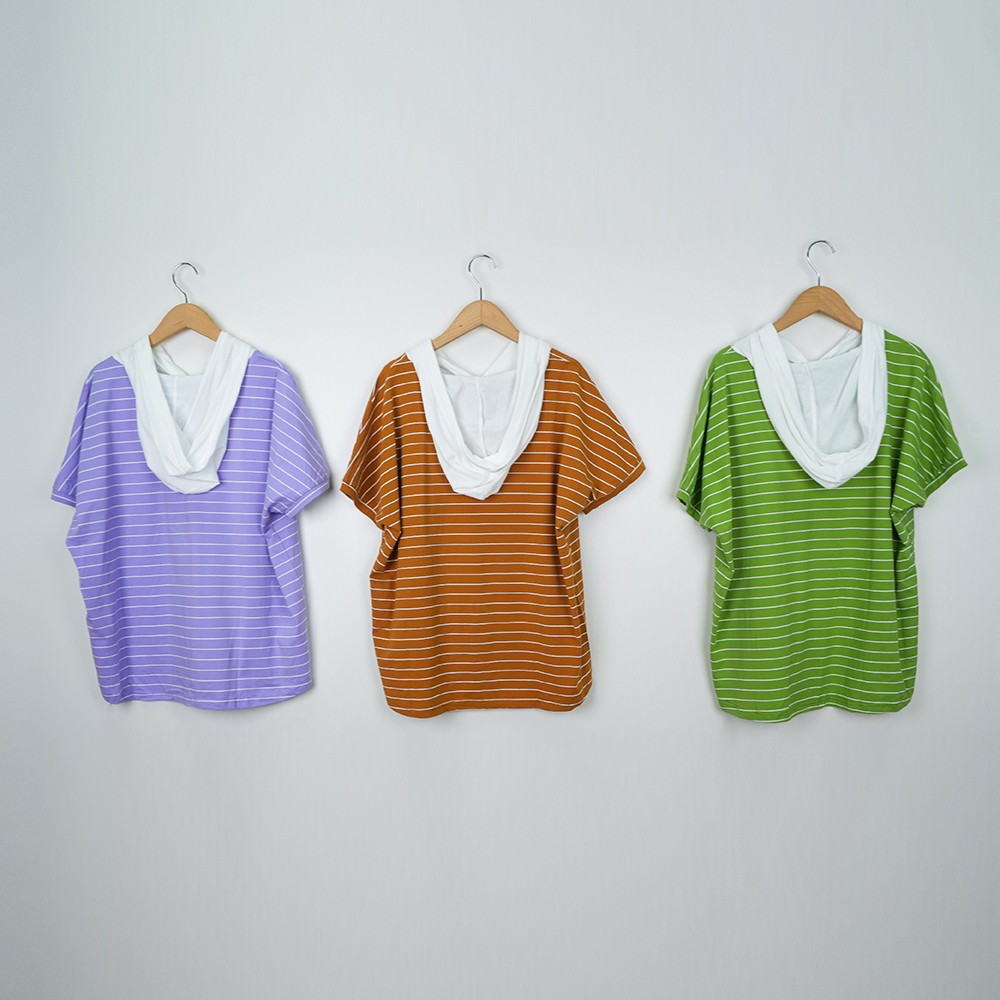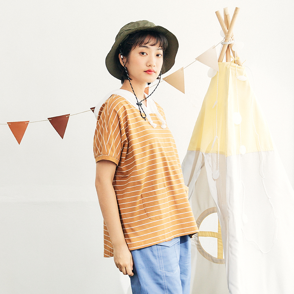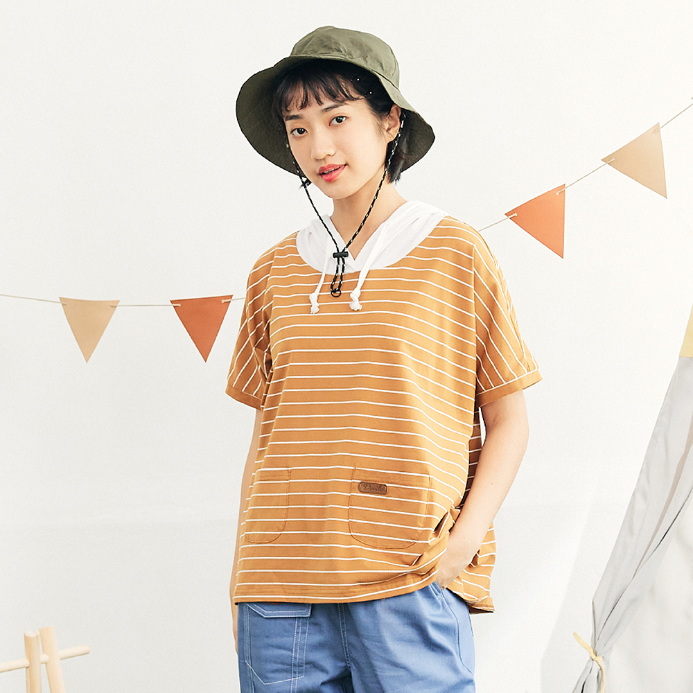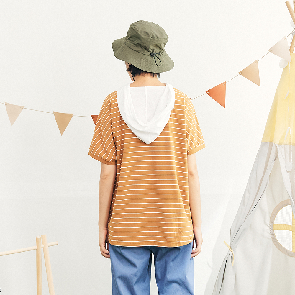 【Dailo】清爽配色風連帽休閒短袖上衣 綠 駝 紫 (魅力商品)