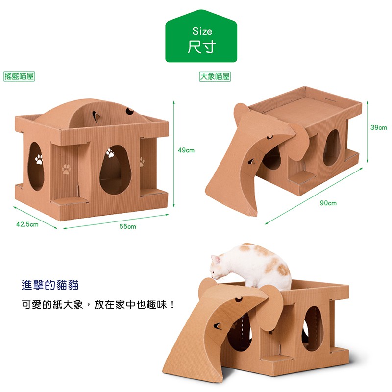 【喵屋Meow】大象喵屋 (是貓窩、遊戲室,也是貓抓板。可自由組裝成喜歡的造型) |TQ MART