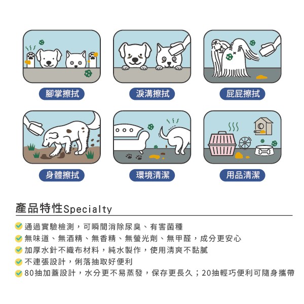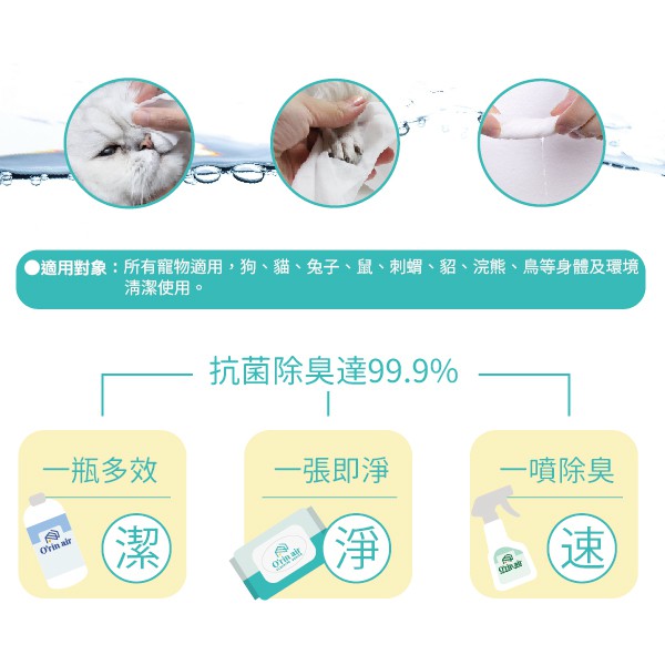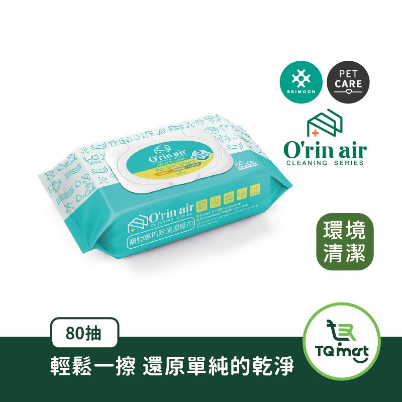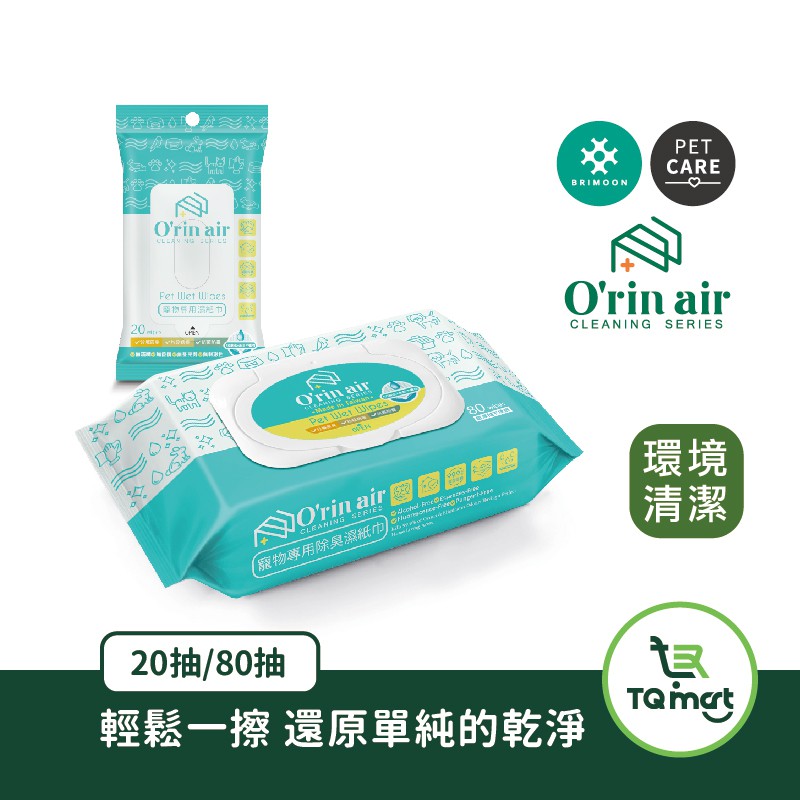 【O'rin air】寵物環境除臭濕紙巾(80抽/20抽) |抗菌除臭 消除尿味 可擦淚溝 | TQ MART