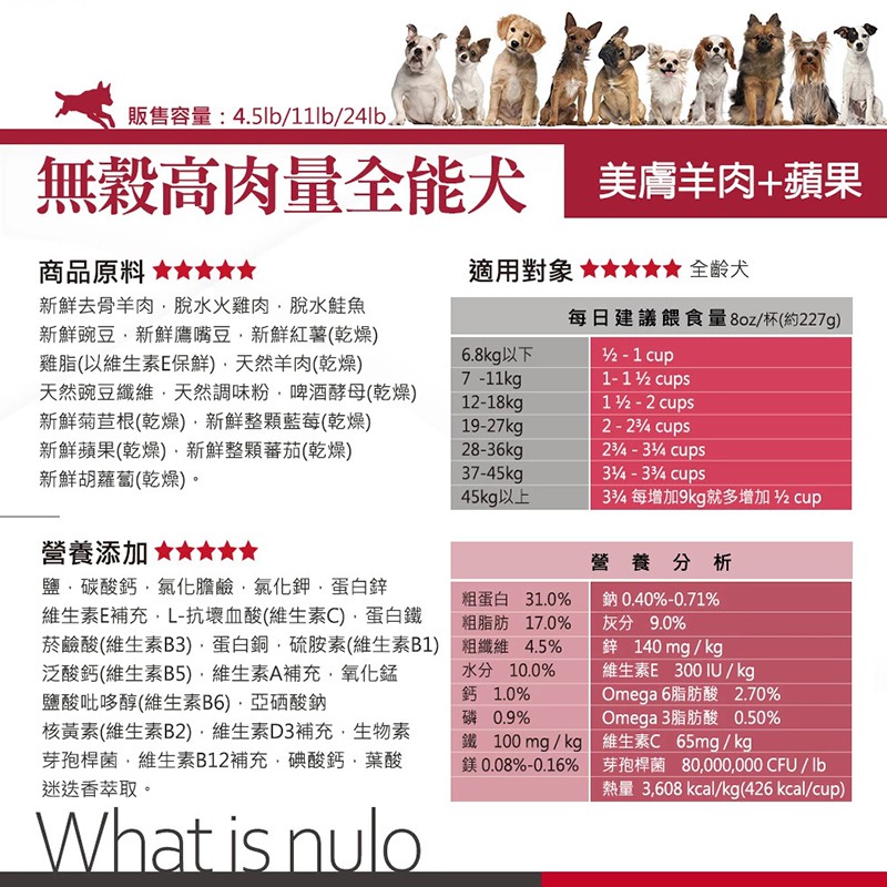【nulo紐樂芙】無穀高肉量 全能犬-美膚羊肉+蘋果(4.5lb/11lb/24lb)|狗糧 狗飼料 |TQ MART