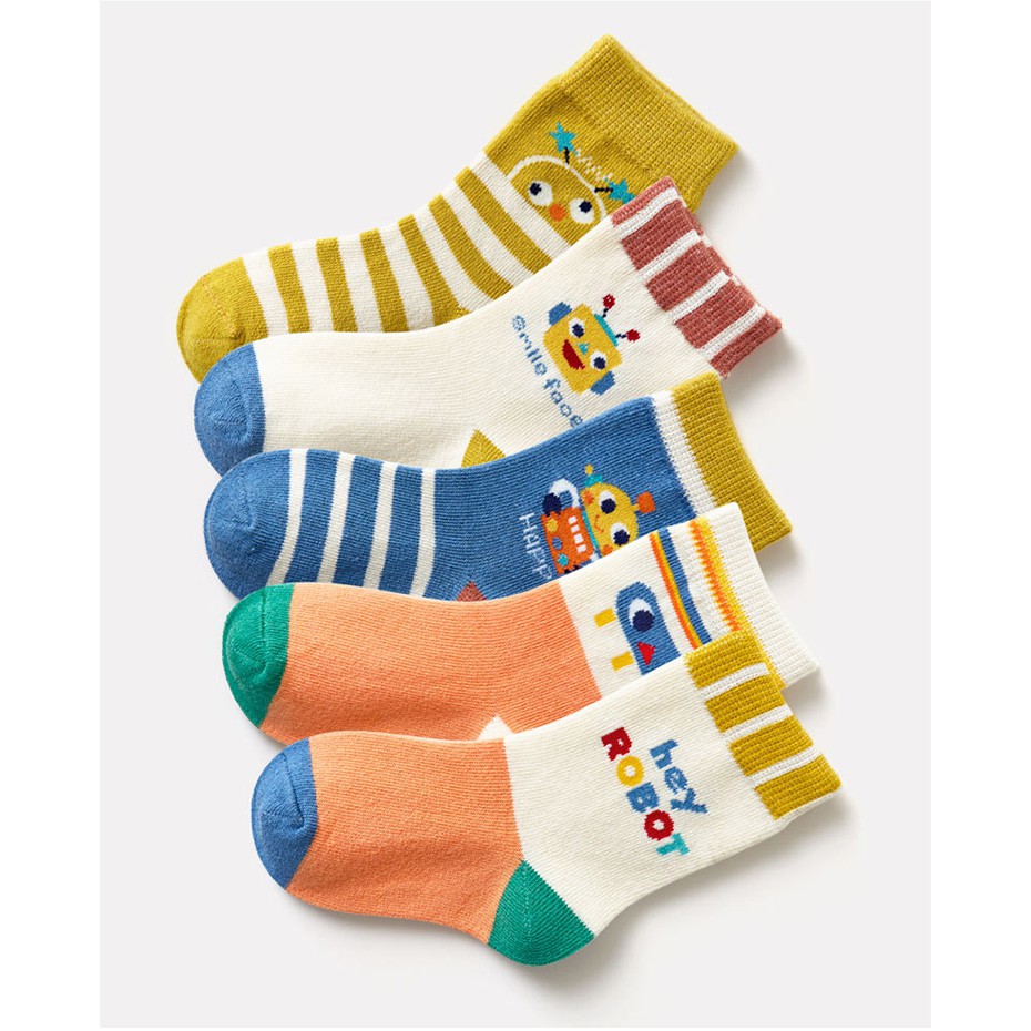 【優貝選】舒適學生童襪5入套組-撞色機器人