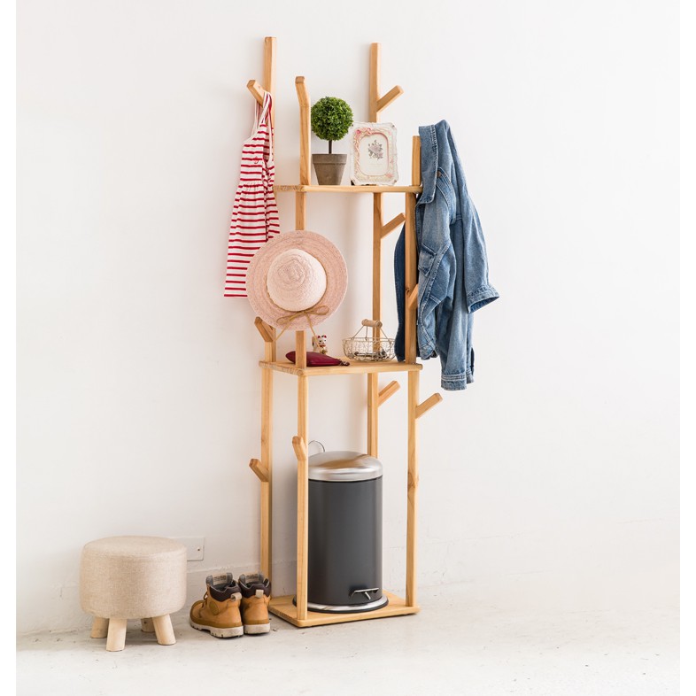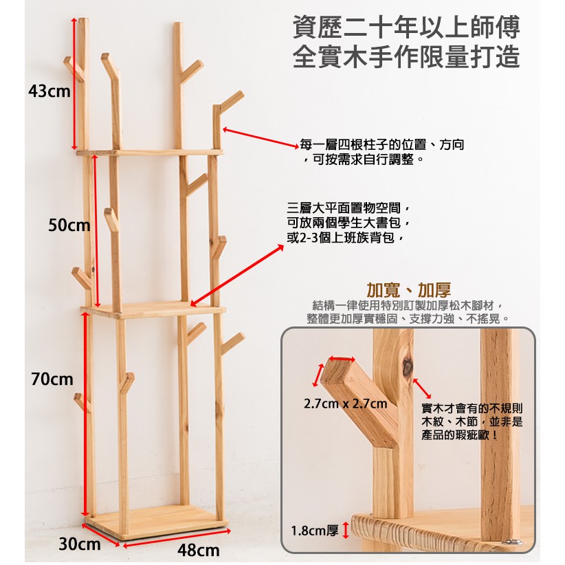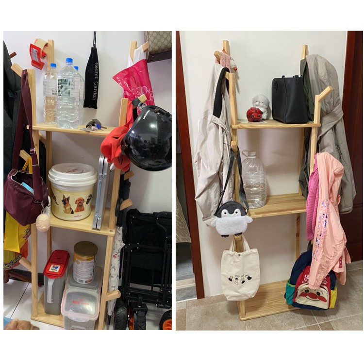 MIT手做日式無印風多功能實木置物架/掛衣架【優貝選】