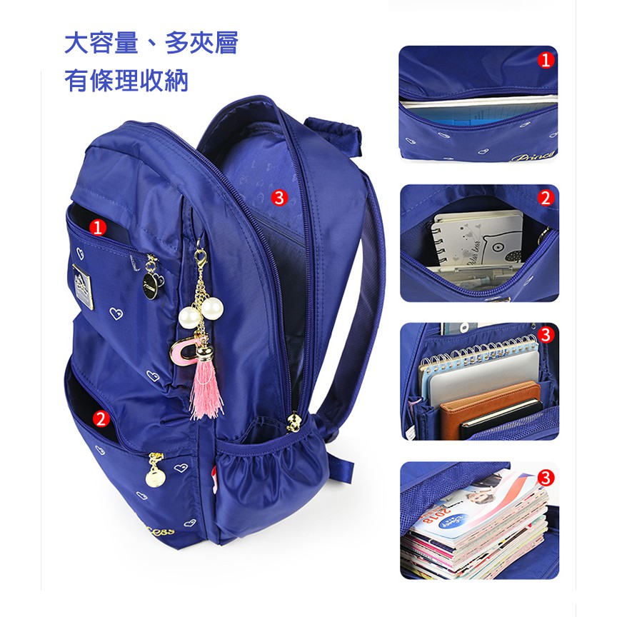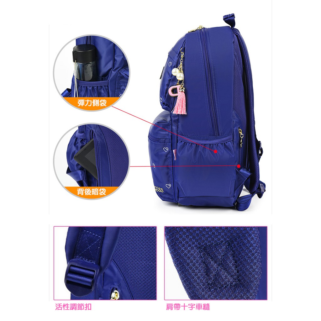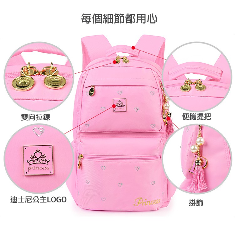 限量優惠-售完斷貨【優貝選】正品授權迪士尼公主素面愛心印花 3-6年級 多夾層/護脊/防潑水 小學生書包